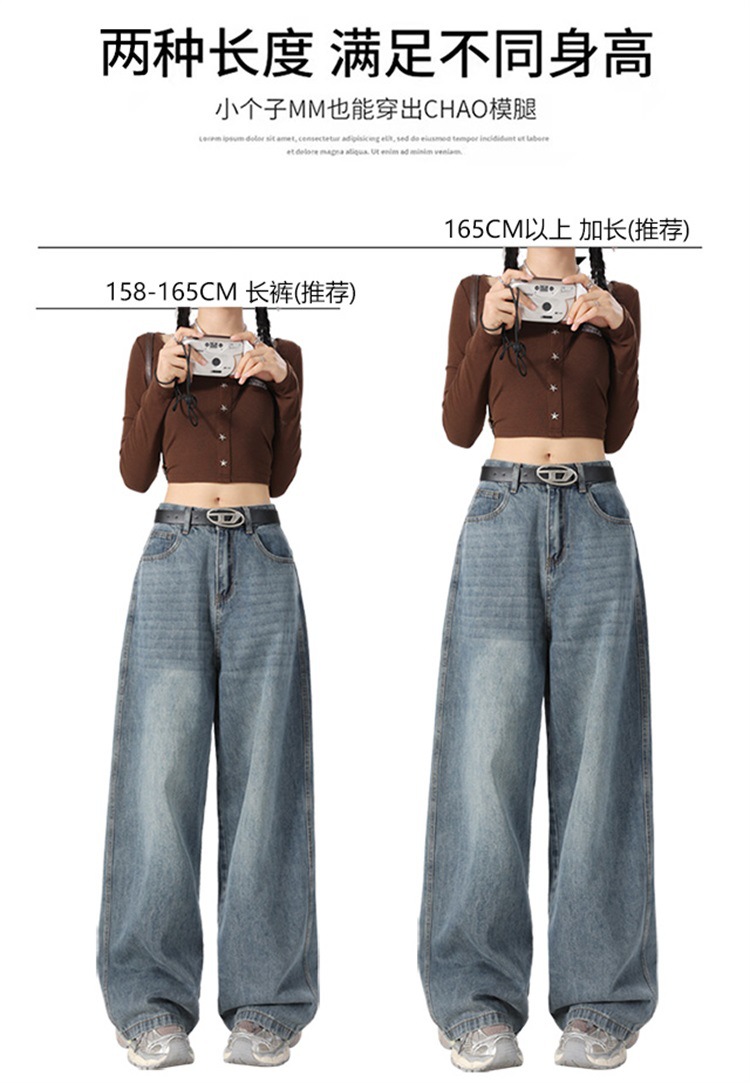 아메리칸 스타일 레트로 느슨한 넓은 다리 청바지 여성용 슬리밍 Sag 2025 하이 웨이스트 스트레이트 여름 새로운 스타일 트레일 링 바지스토어 가기