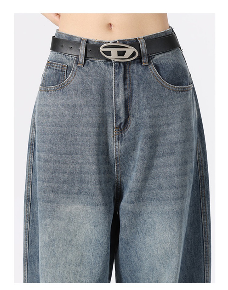 아메리칸 스타일 레트로 느슨한 넓은 다리 청바지 여성용 슬리밍 Sag 2025 하이 웨이스트 스트레이트 여름 새로운 스타일 트레일 링 바지