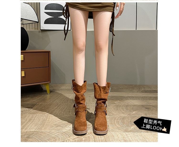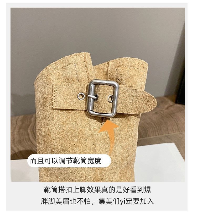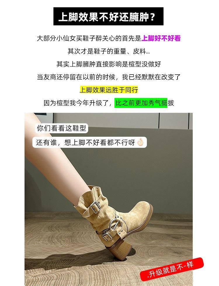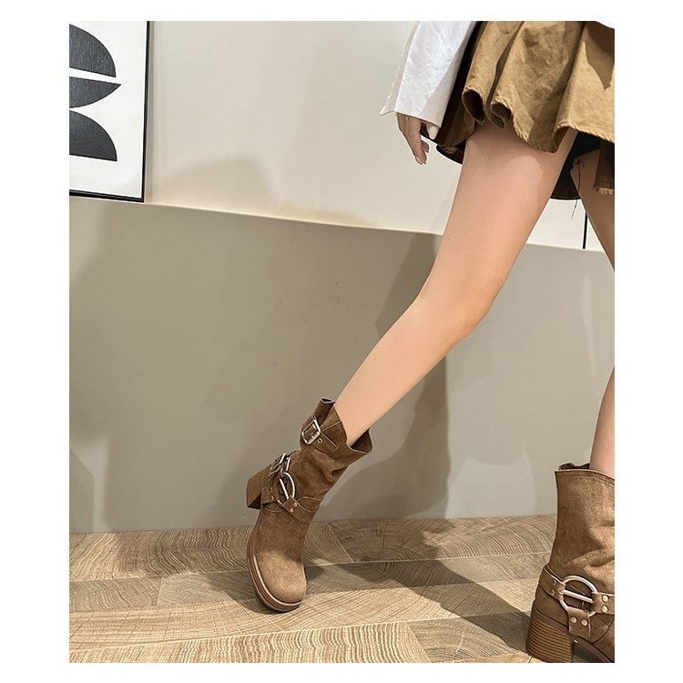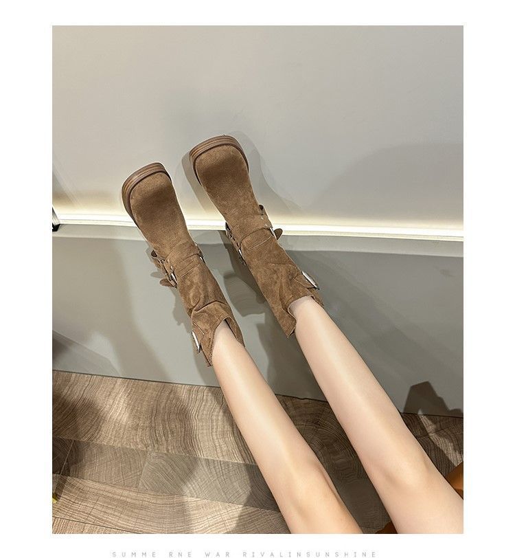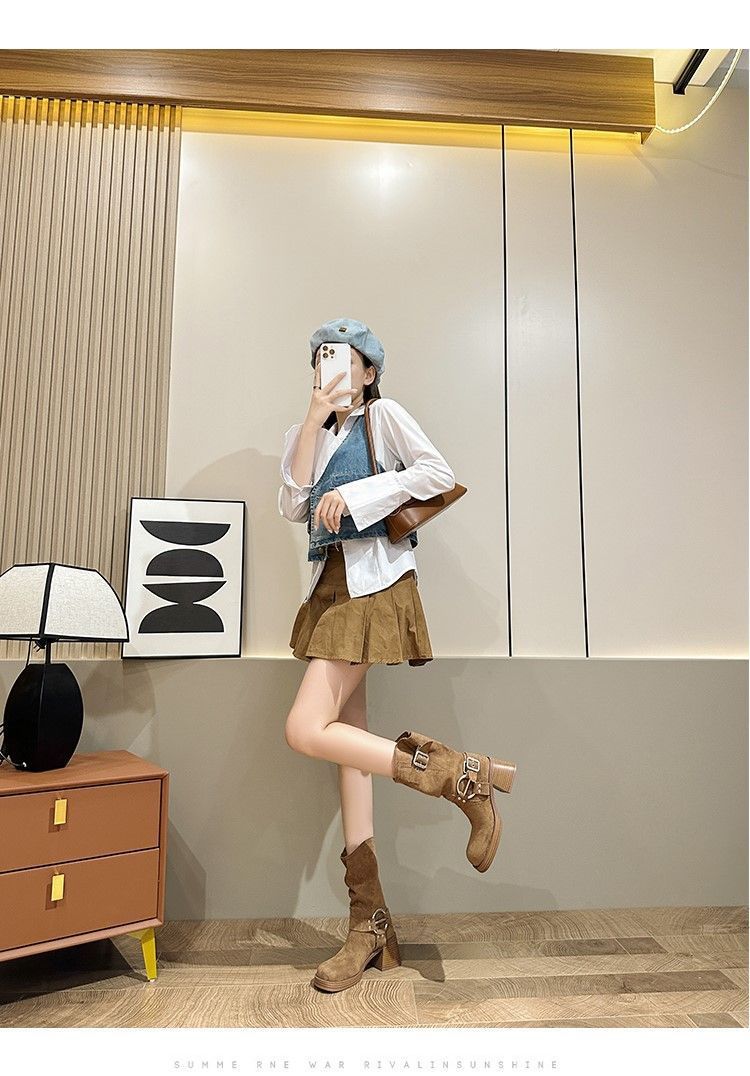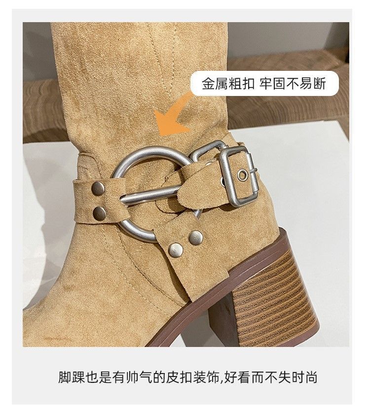 화이트 힙 부츠 여성 두꺼운 힐 하이힐 웨스턴 카우보이 부츠 봄과 가을 새로운 스웨이드 중형 부츠스토어 가기