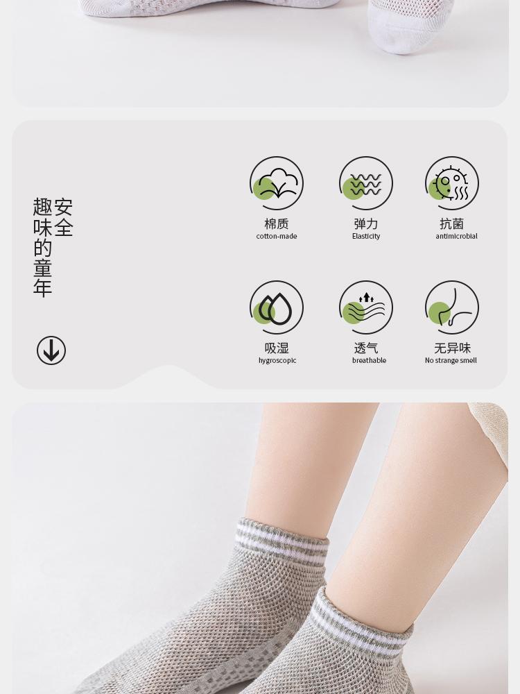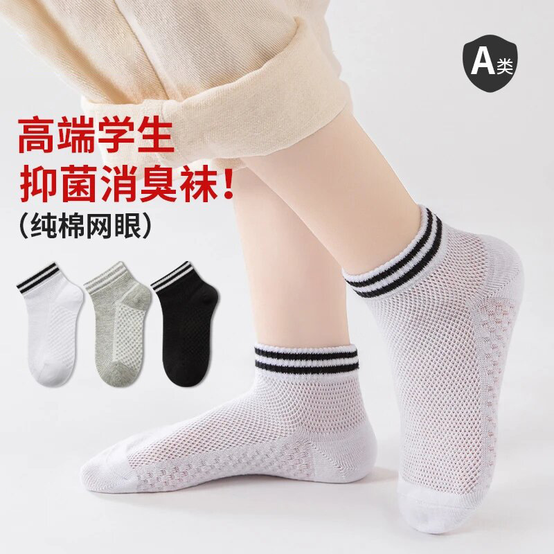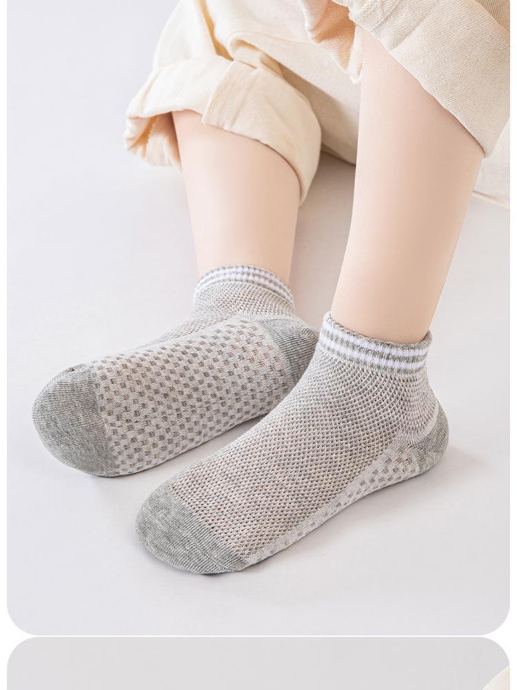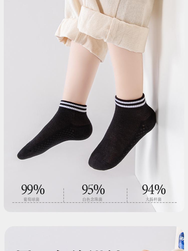 어린이 양말 봄과 여름 메쉬 폭발 짧은 양말 줄무늬 흑백 회색 남성과 여성의 중간 및 큰 어린이 순면 뼈없는 보트 양말스토어 가기
