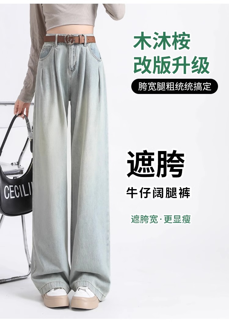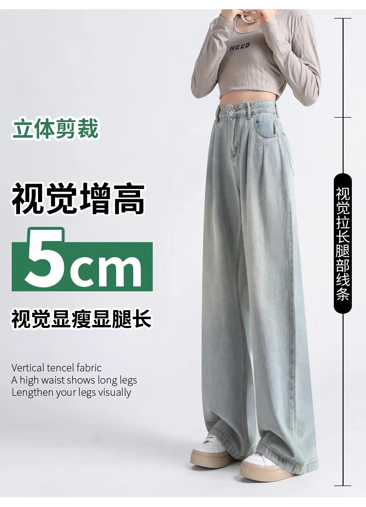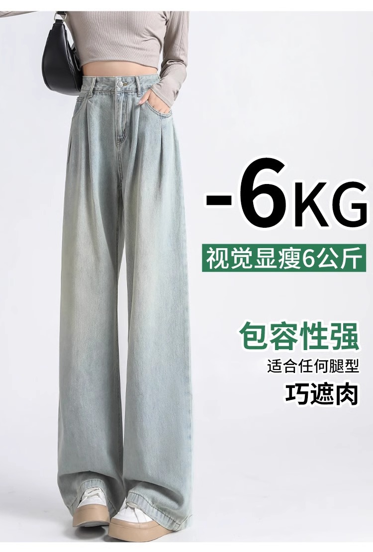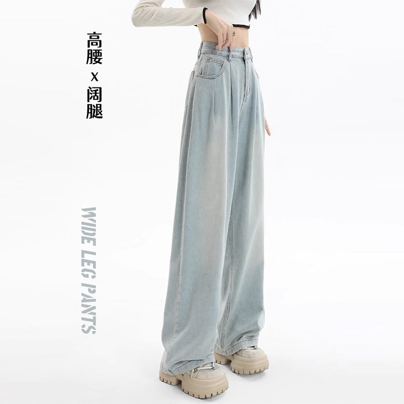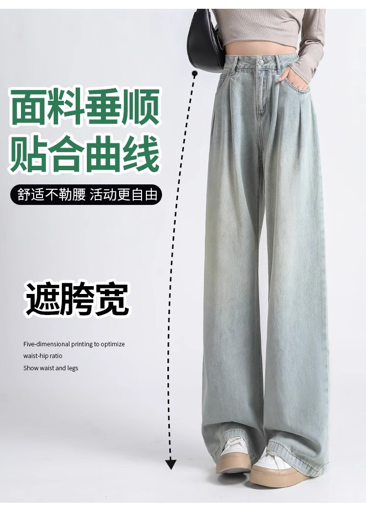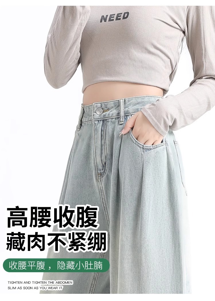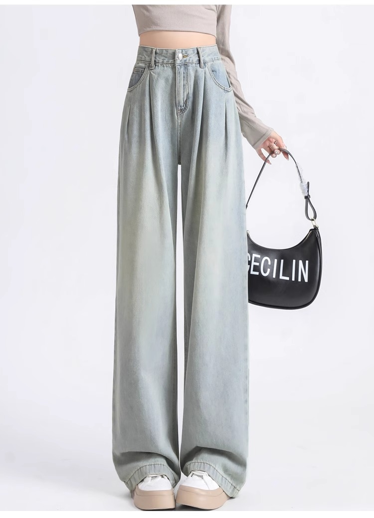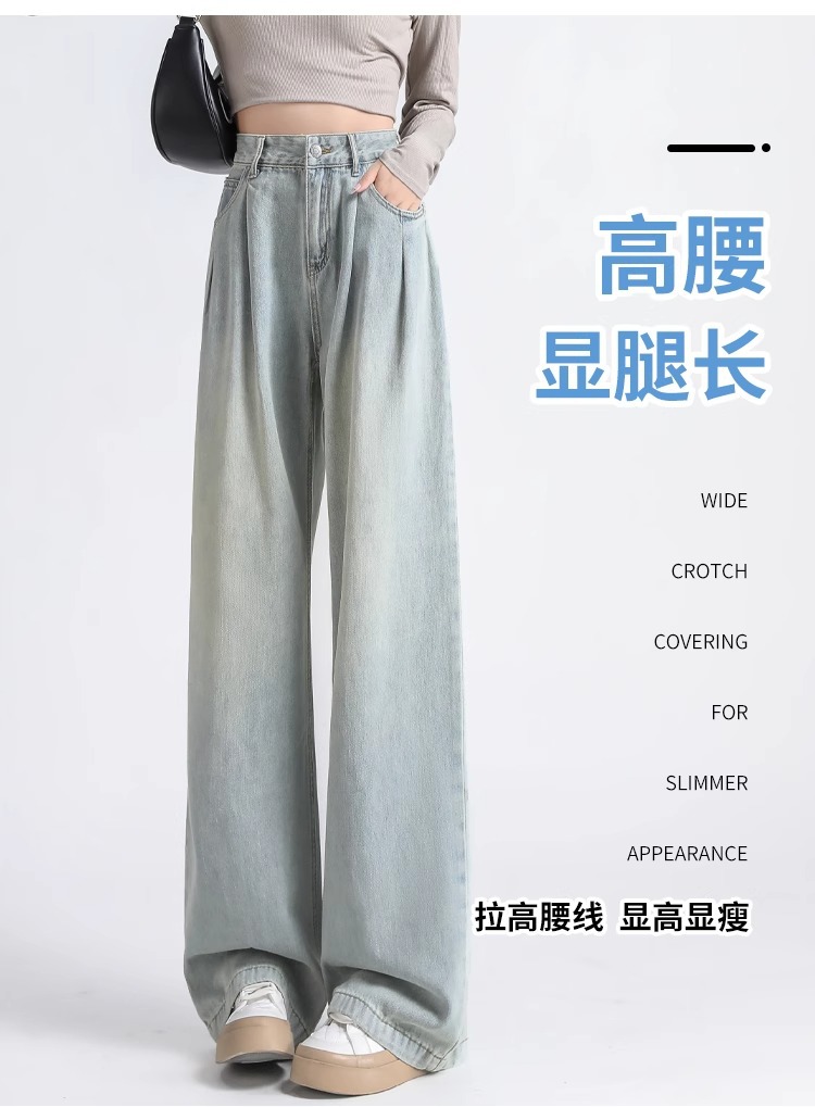 높은 허리 넓은 다리 청바지 봄 여름 새로운 2025 작은 여성을위한 느슨한 슬리밍 바지 밝은 색상 스트레이트 다리 바지스토어 가기