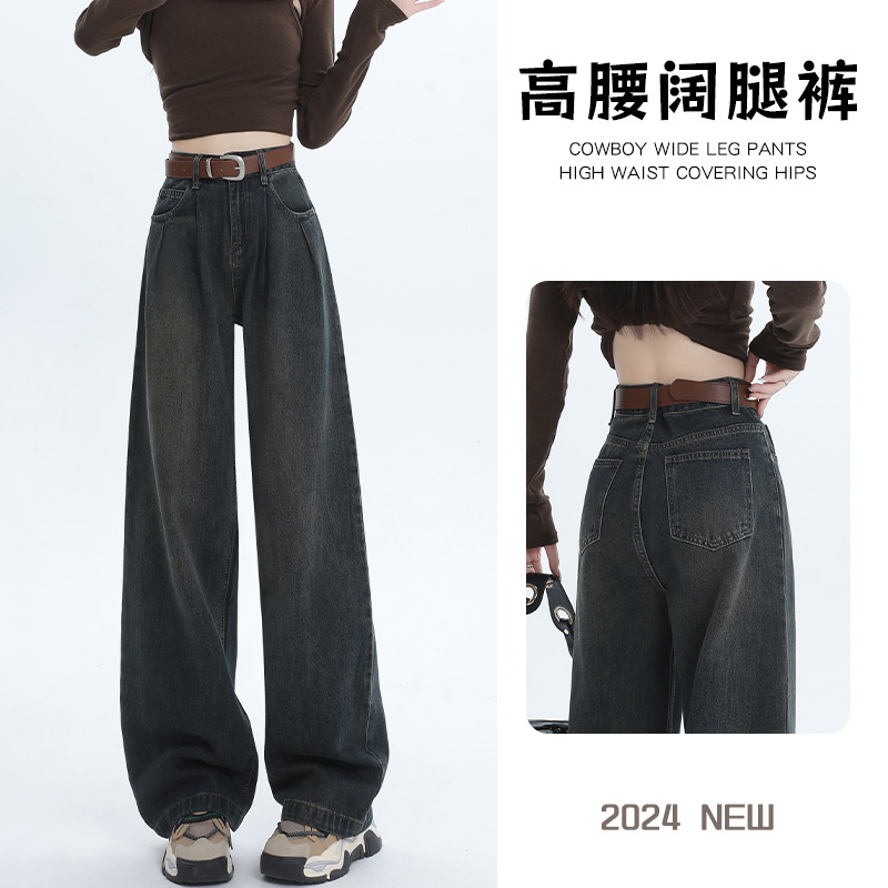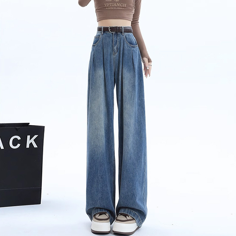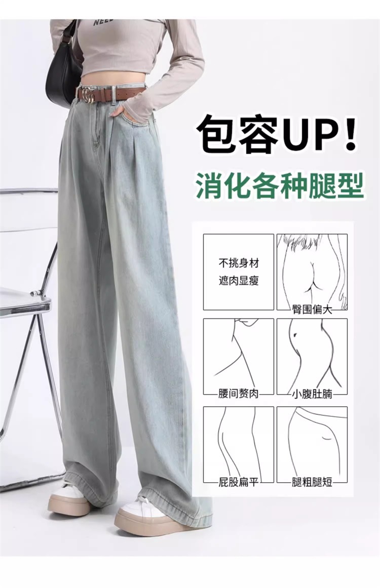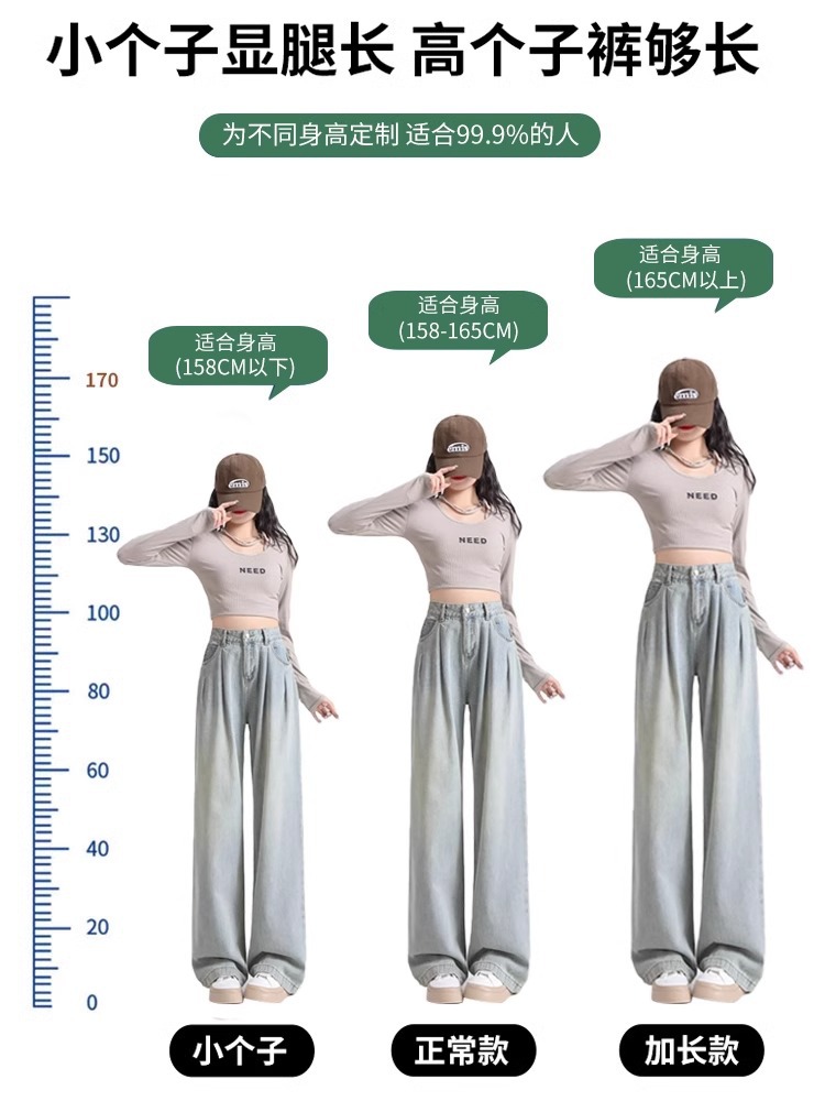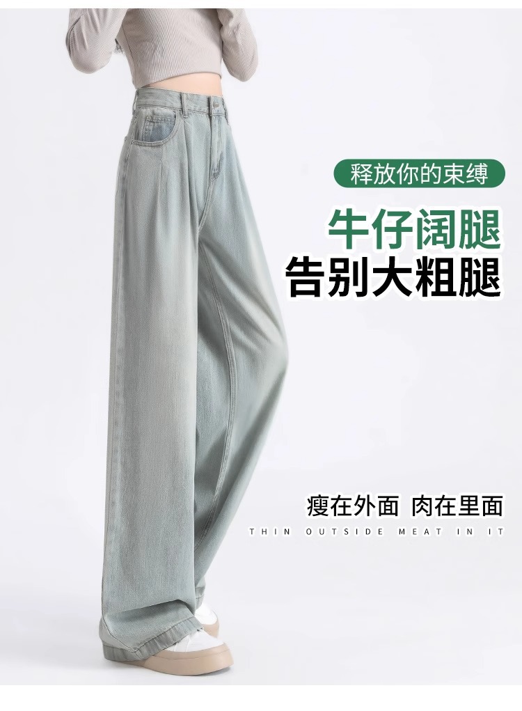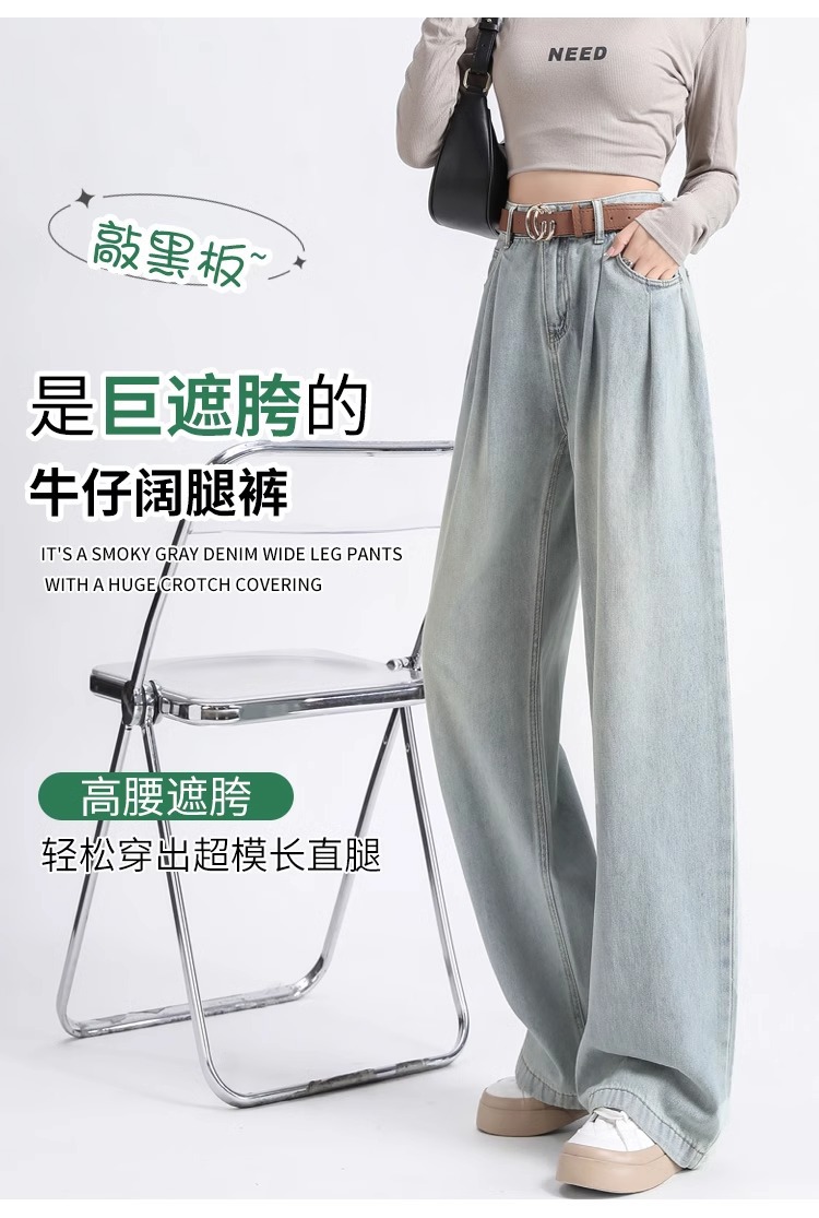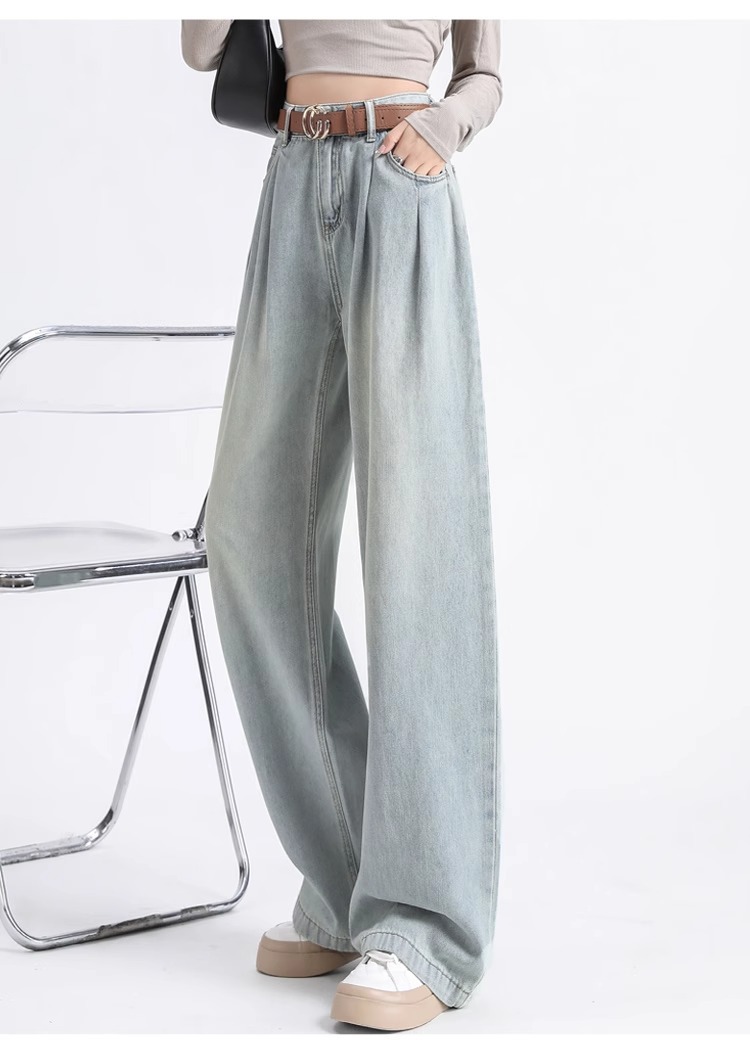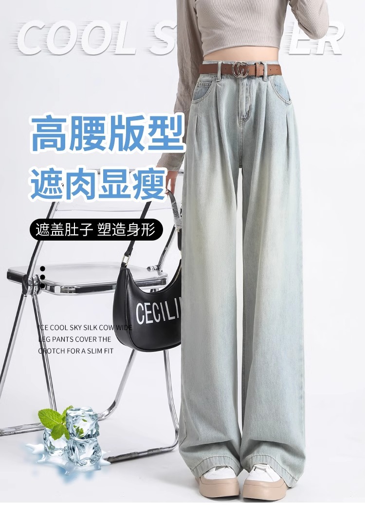 높은 허리 넓은 다리 청바지 봄 여름 새로운 2025 작은 여성을위한 느슨한 슬리밍 바지 밝은 색상 스트레이트 다리 바지스토어 가기