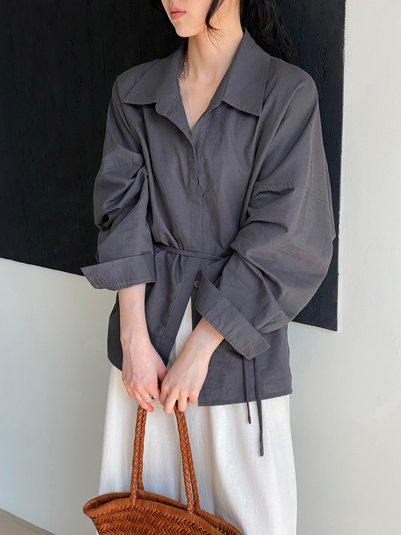 너무 부드러운 지능 ~ 면 및 린넨 기질 스트랩 허리 셔츠 여성의 느슨한 조커 슬림 통근 재킷 6035스토어 가기