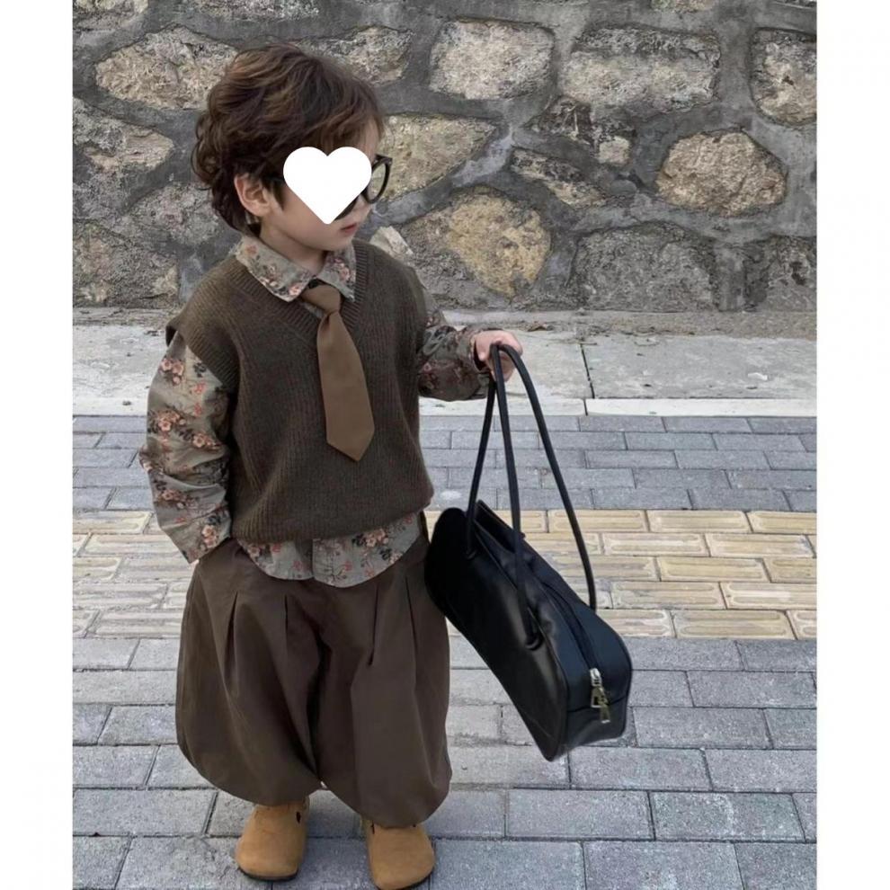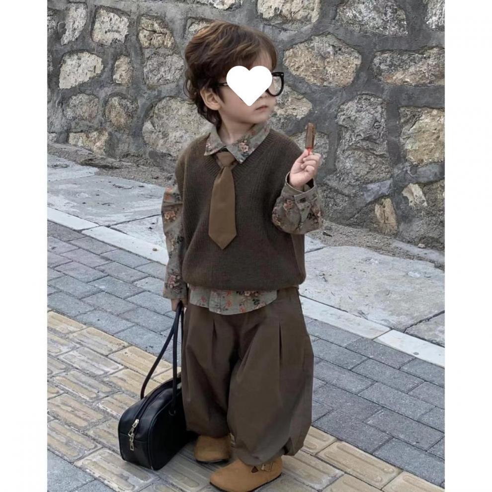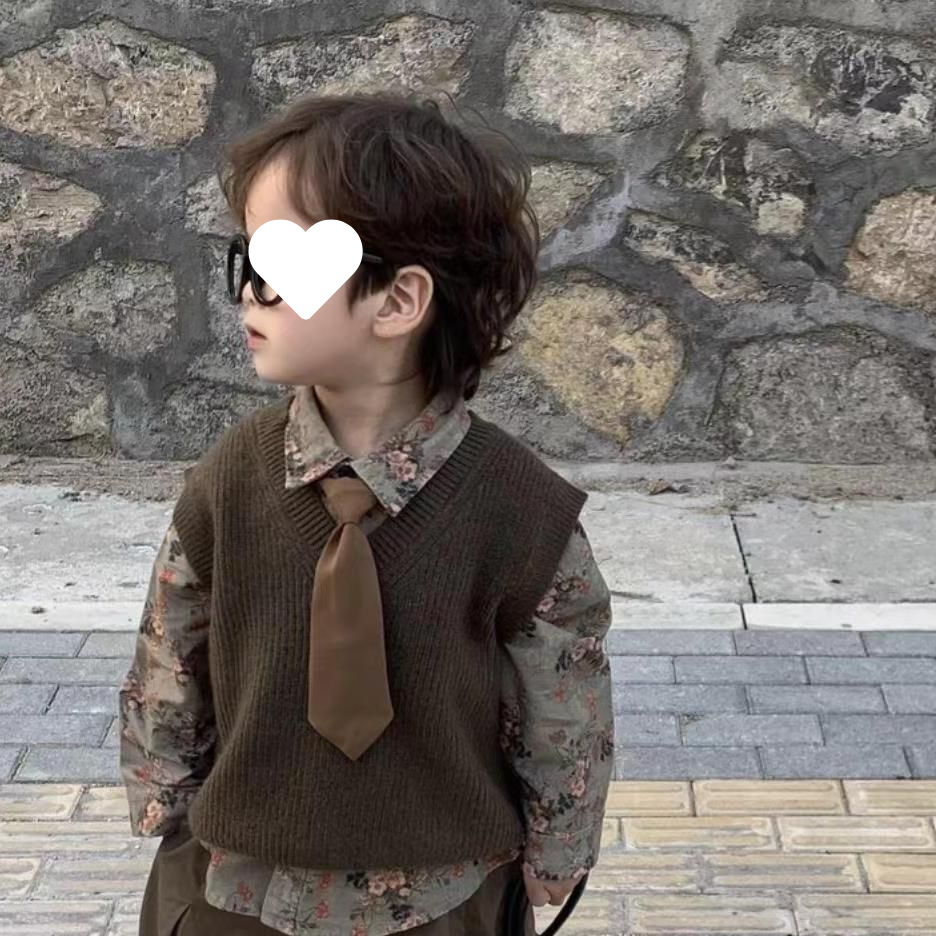 소년 정장 2025 새로운 한국 스타일 봄, 가을 긴팔 셔츠 니트 양복 조끼 서양식스토어 가기