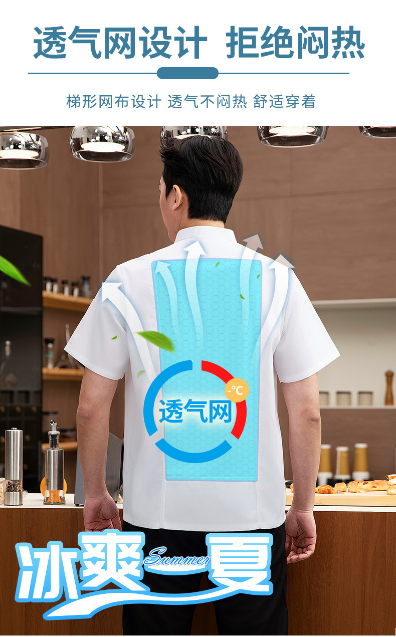 고급 통기성 그물 여름 요리사 작업 옷 얇은 레스토랑 와인 호텔 베이킹 후 주방 짧은 소매 도구스토어 가기