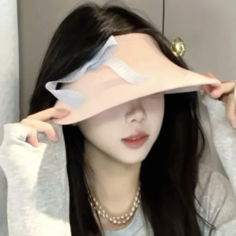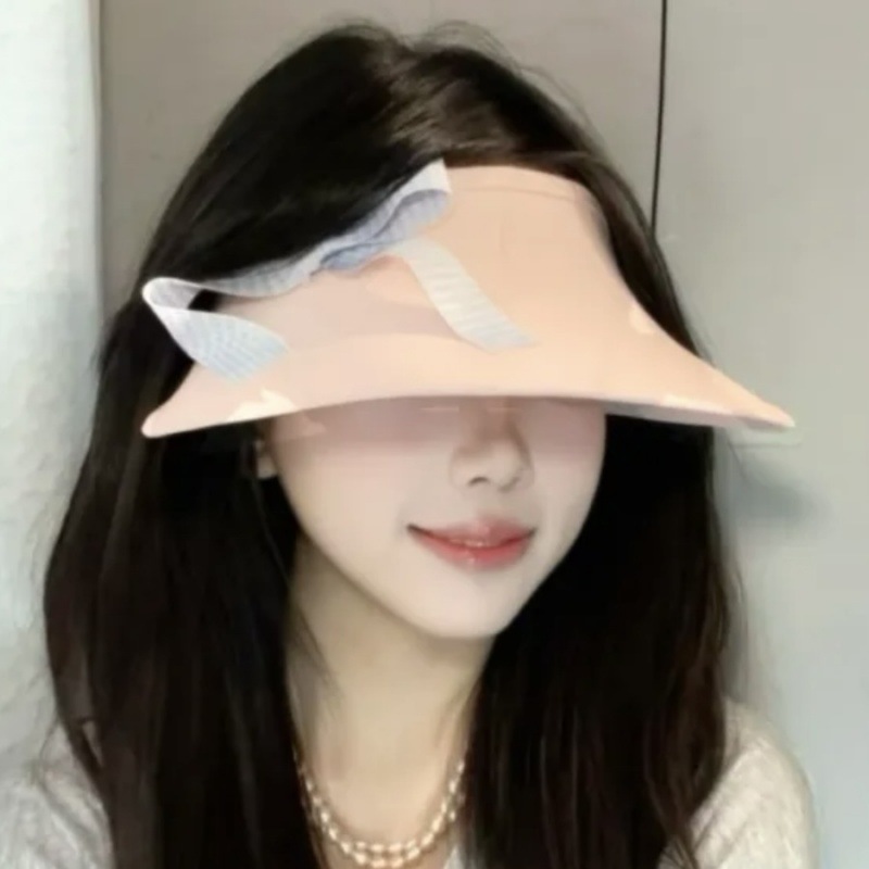 귀여운 활 격자 선 스크린 모자 소녀의 봄과 여름 무표정 빈 모자 큰 모자 햇빛 자외선 차단