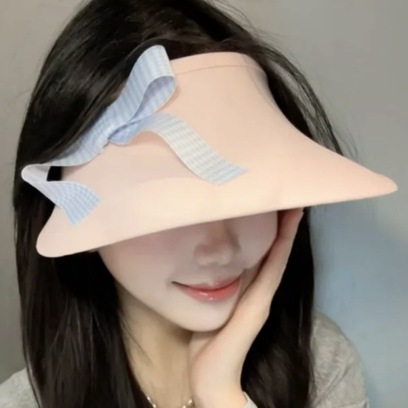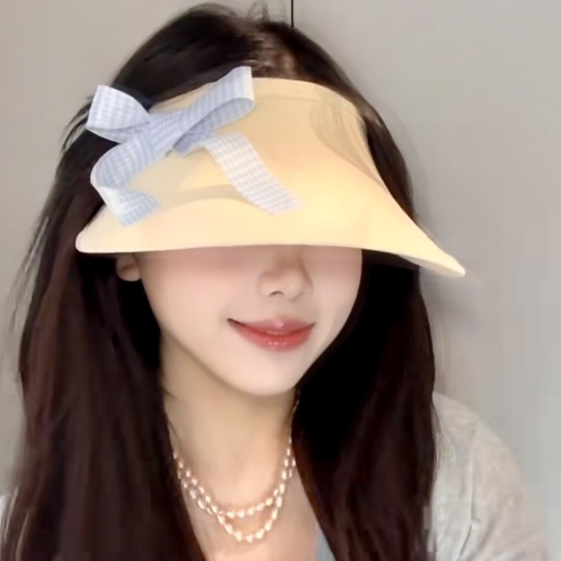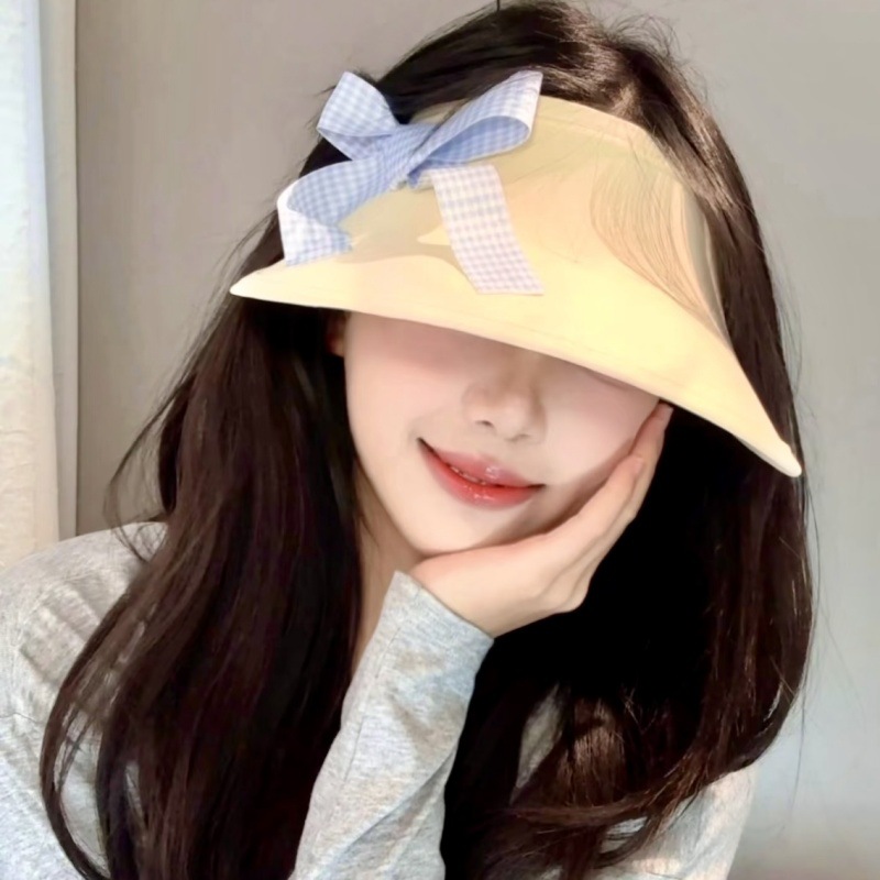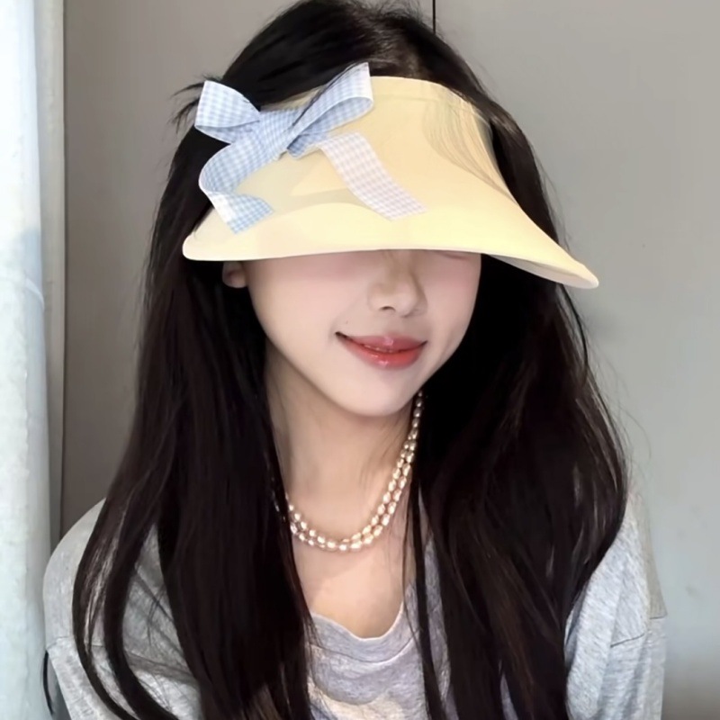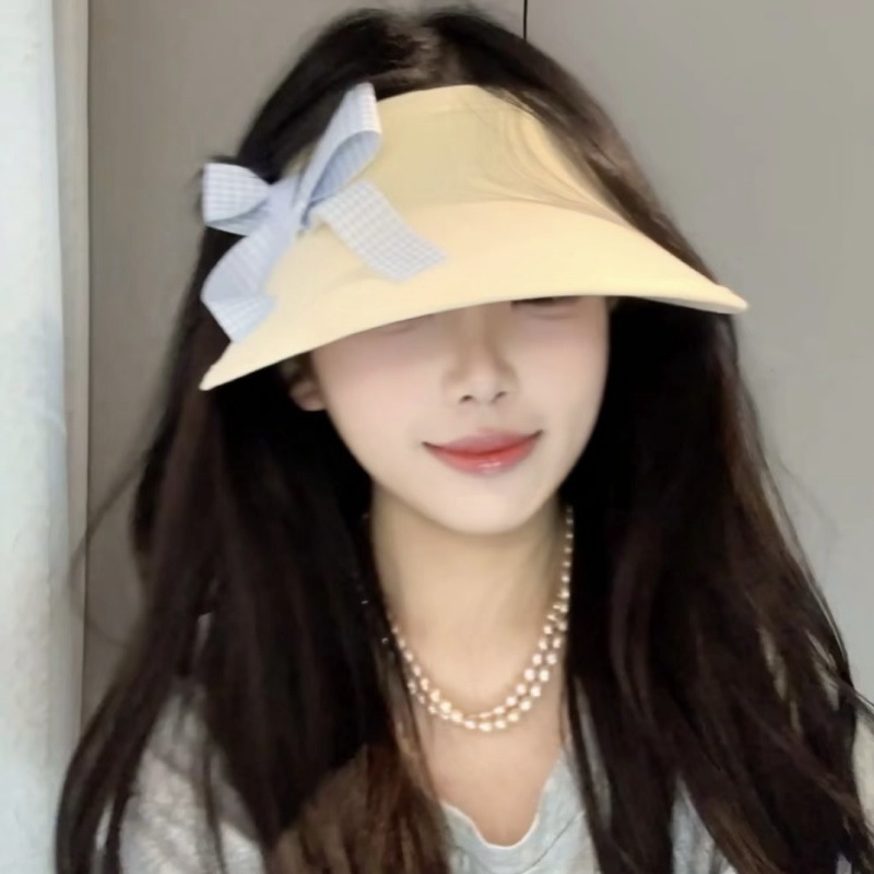 귀여운 활 격자 선 스크린 모자 소녀의 봄과 여름 무표정 빈 모자 큰 모자 햇빛 자외선 차단스토어 가기
