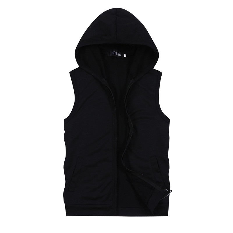 2023 남자 솔리드 컬러 조끼 플러스 사이즈 카디건 후드 민소매 티셔츠 남자 아마존 대외 무역 스포츠웨어