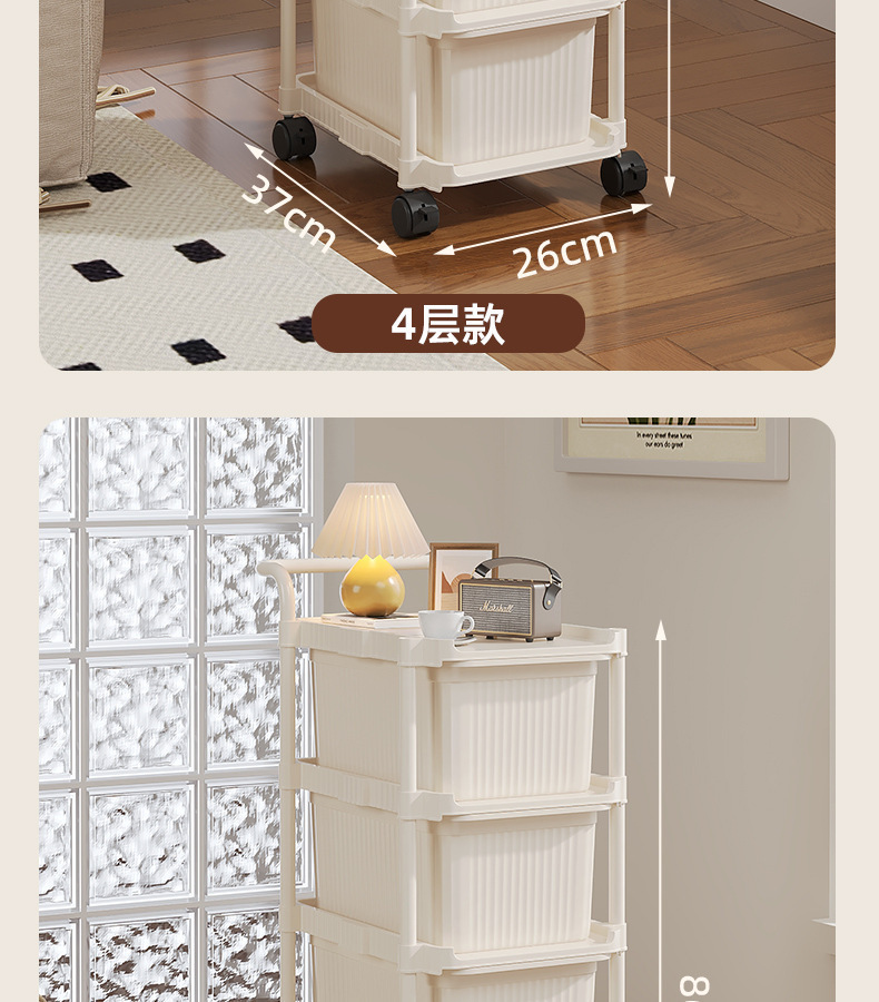 • 4단 [오프화이트 서랍카트] 두꺼워진 PP수출품질