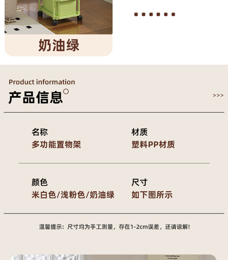 • 3단 [크림그린 서랍카트] 두꺼워진 PP 수출품질