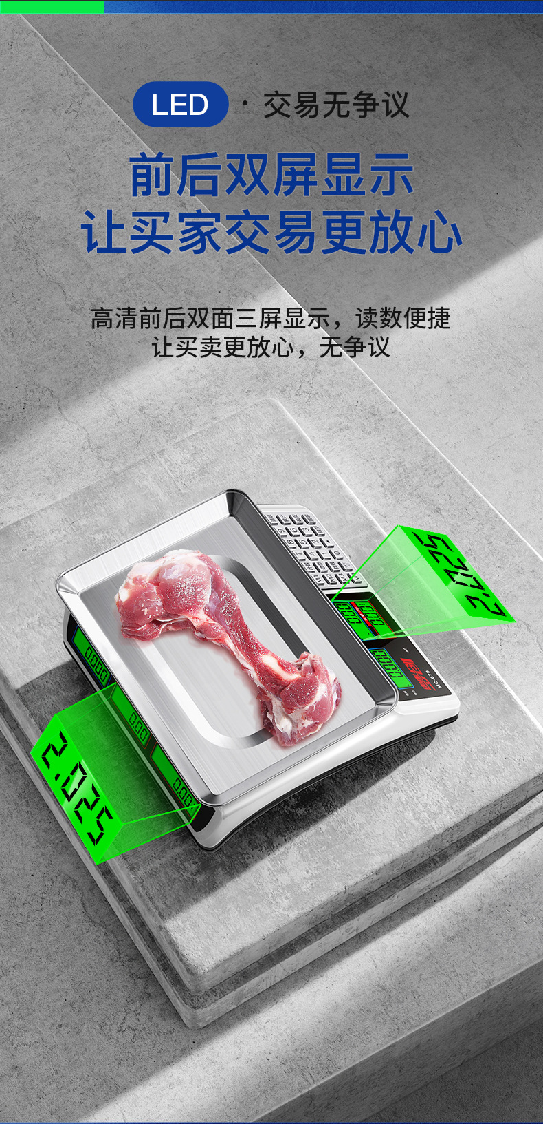 • 30Kg 건식 충전 및 플러그인 삼용액정 오목형 트레이 모델 [듀얼 디스플레이 검정색 문자] 방수 커버 포함
