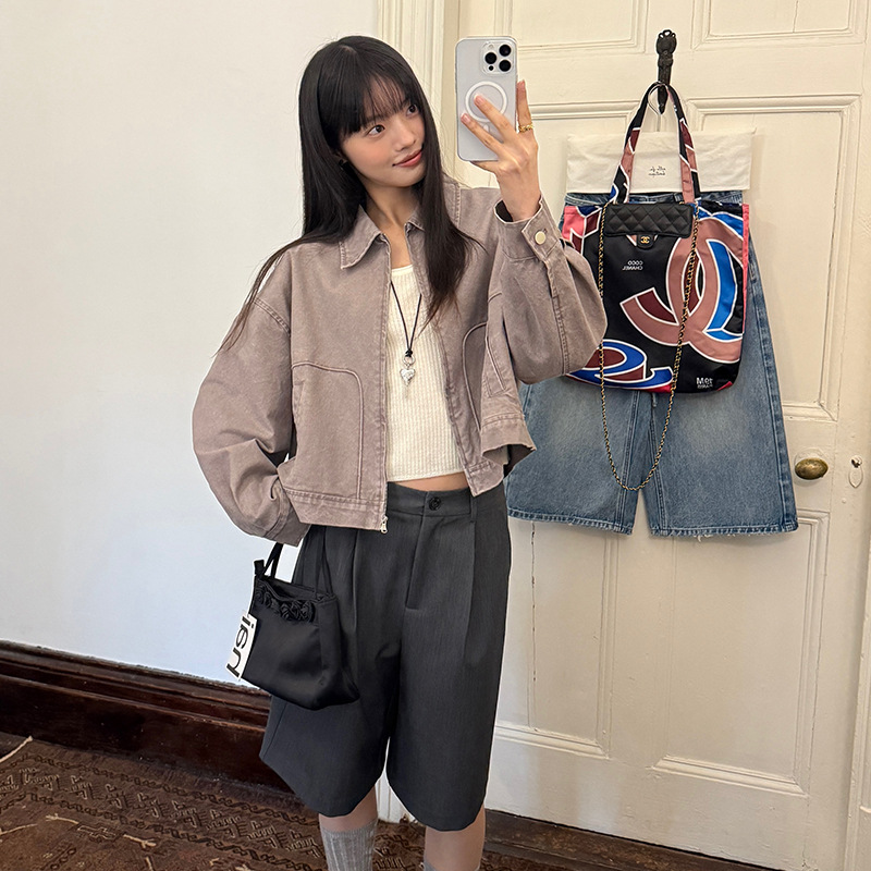 【재고정리 무반품】워크웨어 스타일 데님 재킷 여성용 봄 다용도 라펠 캐주얼 재킷 상의 23096