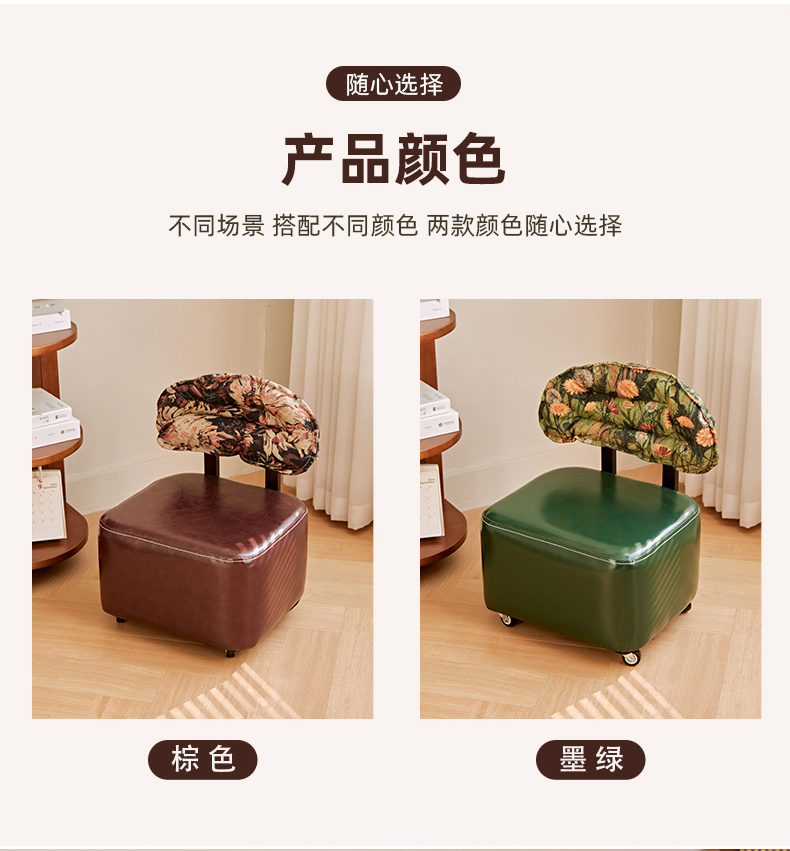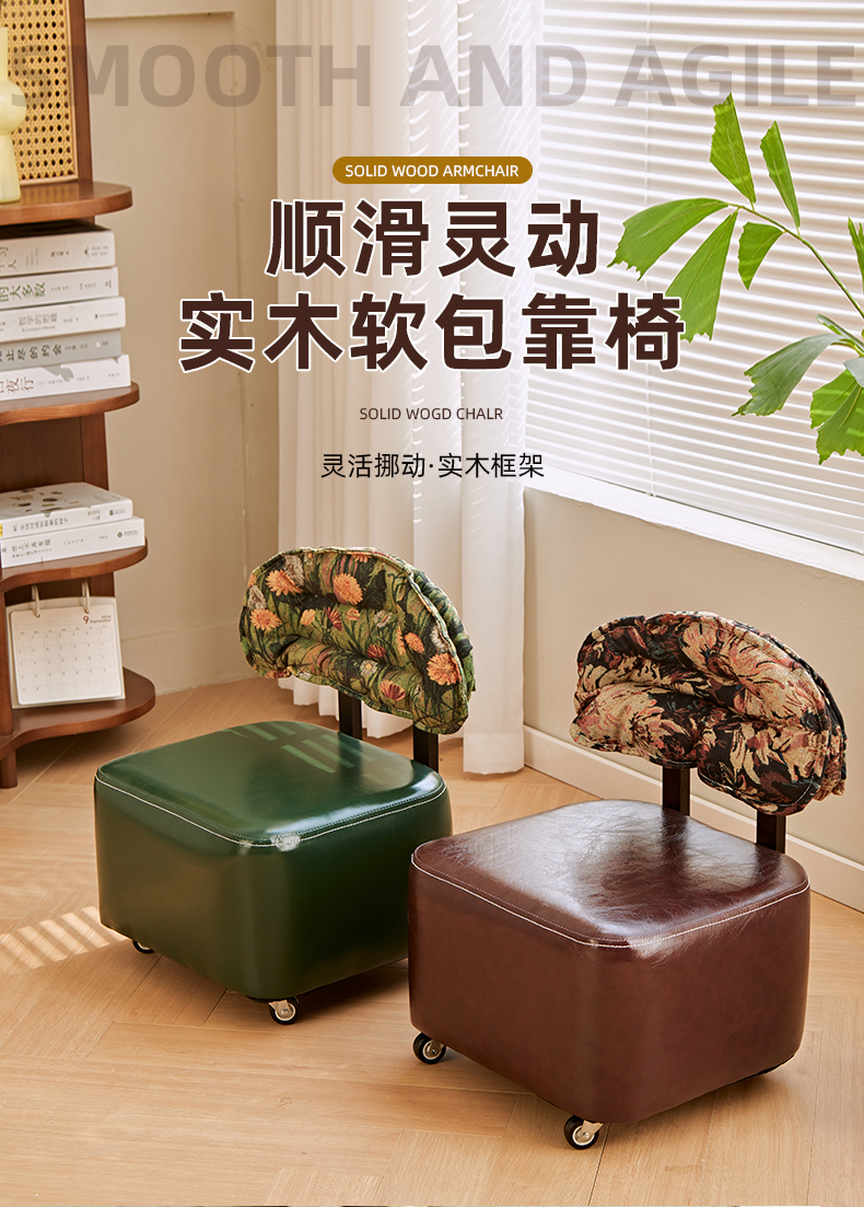 솔리드 우드 의자 가정용 등받이 작은 의자 모바일 소파 의자 부드러운 가방 신발 변경 의자 유니버설 휠 벤치 가정용 낮은 의자스토어 가기