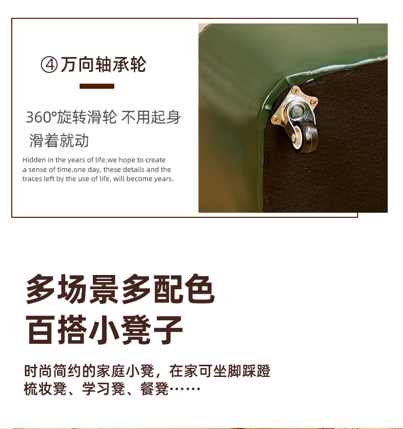솔리드 우드 의자 가정용 등받이 작은 의자 모바일 소파 의자 부드러운 가방 신발 변경 의자 유니버설 휠 벤치 가정용 낮은 의자