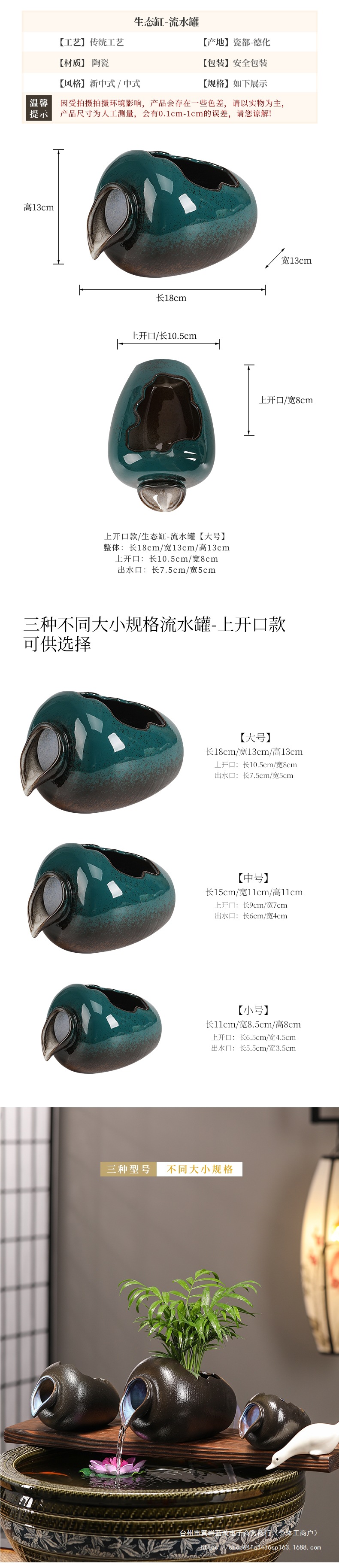 생태 흐르는 물 도자기 항아리 개방 여과 순환 물 장식품 어항 어항 양식 액세서리 창조적 인 안뜰 풍수 조경