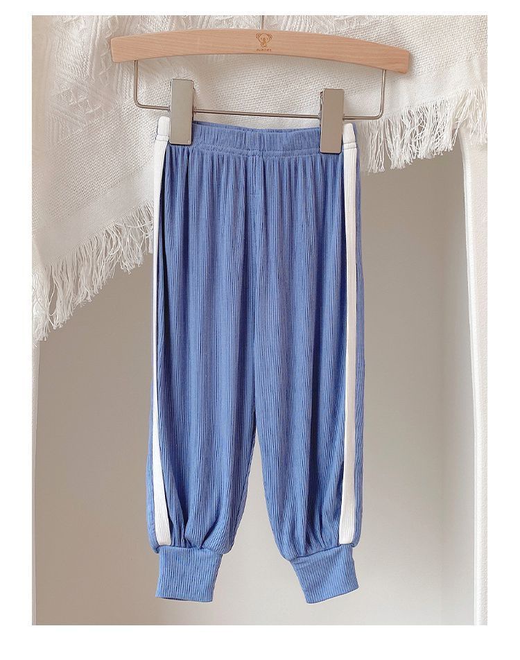 여름 남녀 아동복 캐주얼 바지 아기의 서양식 어린이 맞춤형 트렌디 브랜드 반 한국 줄무늬 발 모기 스포츠 바지스토어 가기