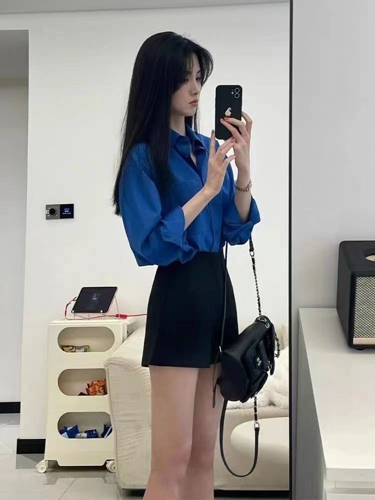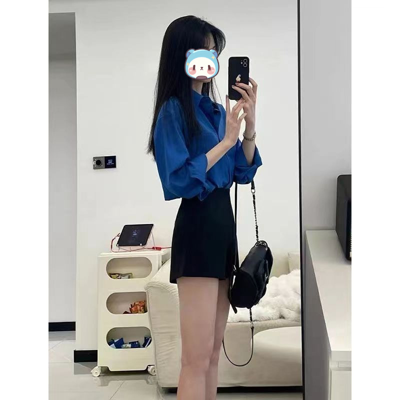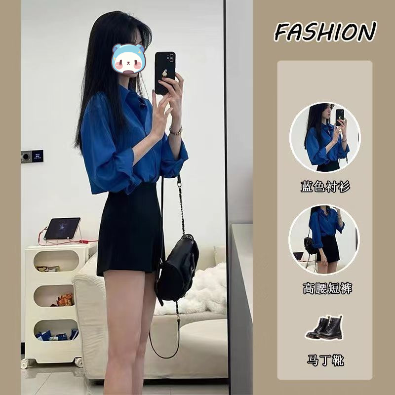 세트 여성 2025 년 여름 새로운 한국 스타일 나이를 줄이는 부드러운 스타일 셔츠 탑 높은 허리 슬리밍 반바지 투피스 세트 트렌디