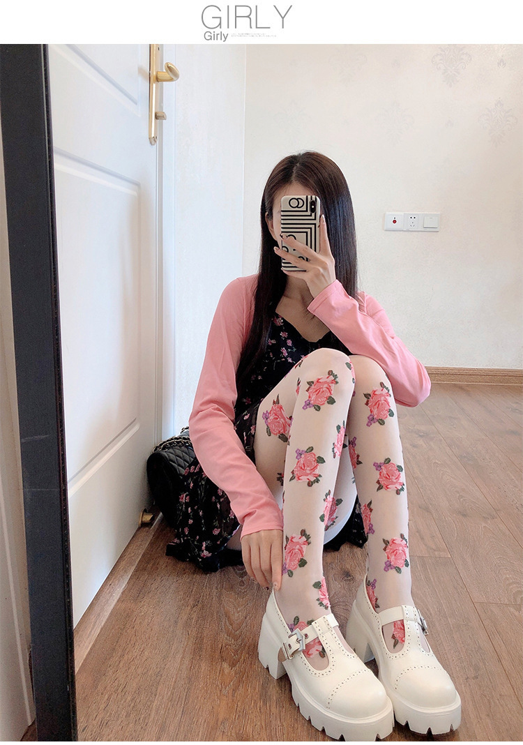 로즈 화이트 팬티스타킹 봄여름 얇은 방수 스타킹 일본식 jk 블랙 실크 레그 웨어