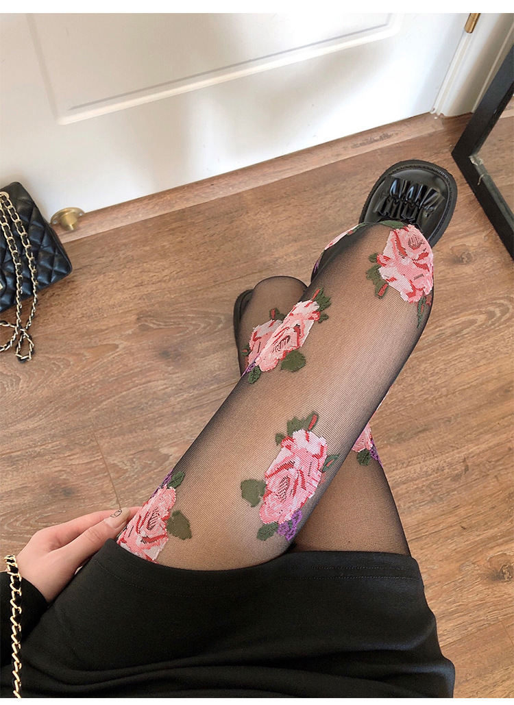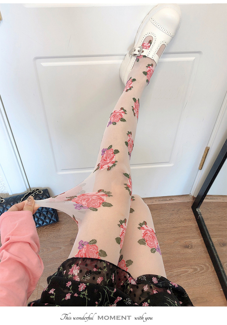 프랑스 복고풍 로즈 화이트 스킨 실크 팬티 스타킹 봄과 여름 얇은 안티 훅 실크베이스 양말 일본 jk 블랙 실크