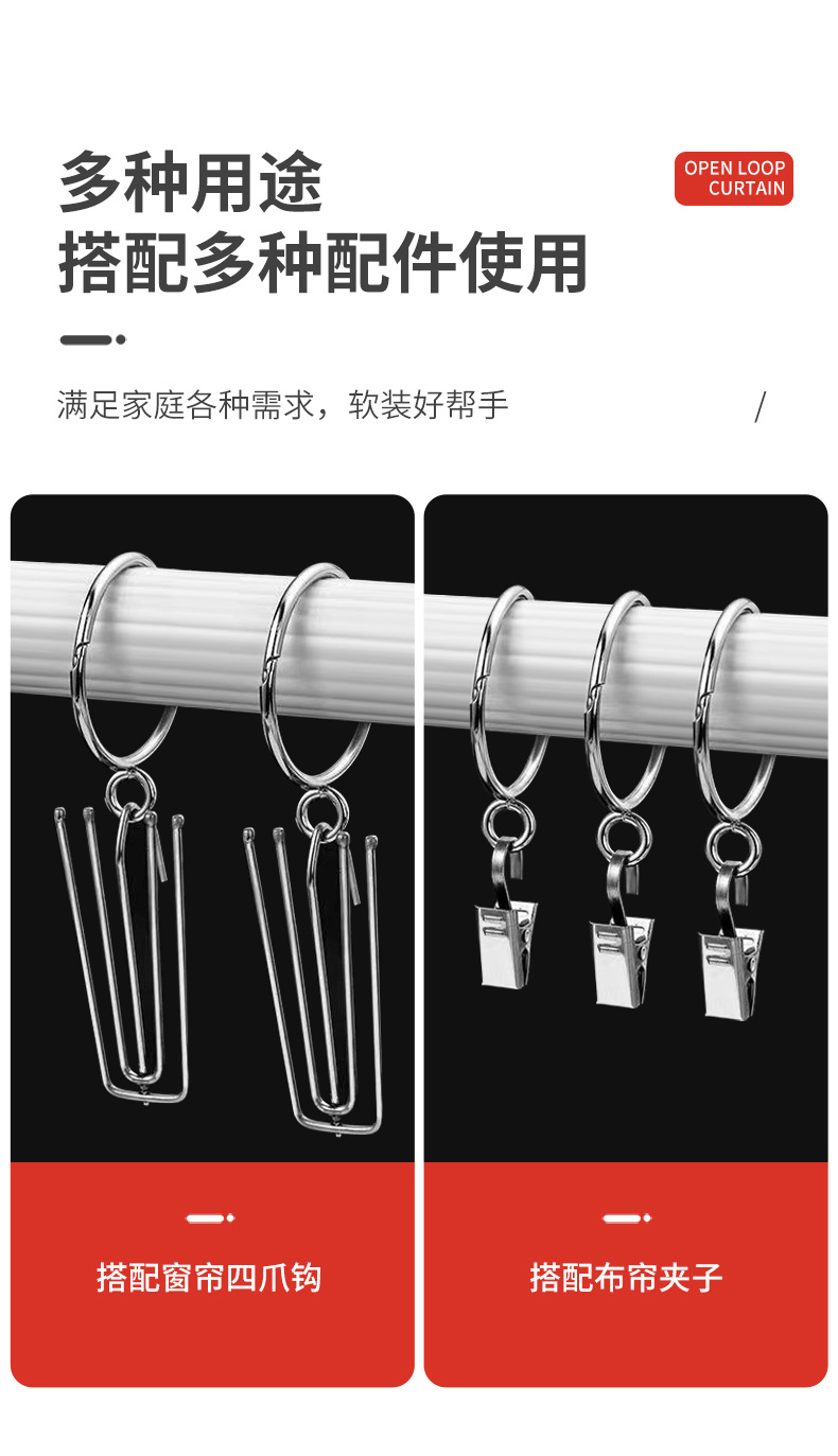 스테인레스 스틸 클립이있는 커튼 오픈 링 천 후크 금속 커튼 링 버클이 달린 로마 링 샤워 커튼 링스토어 가기