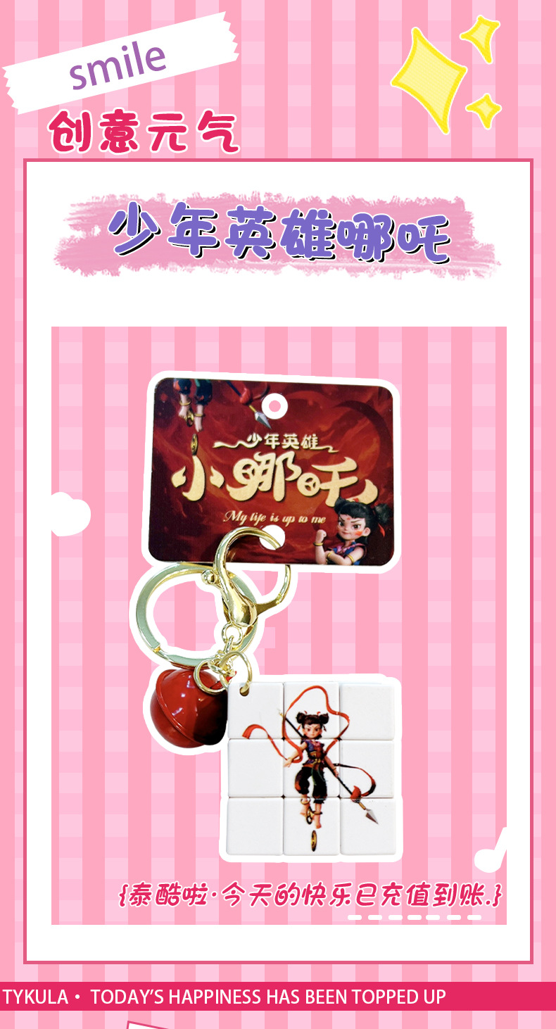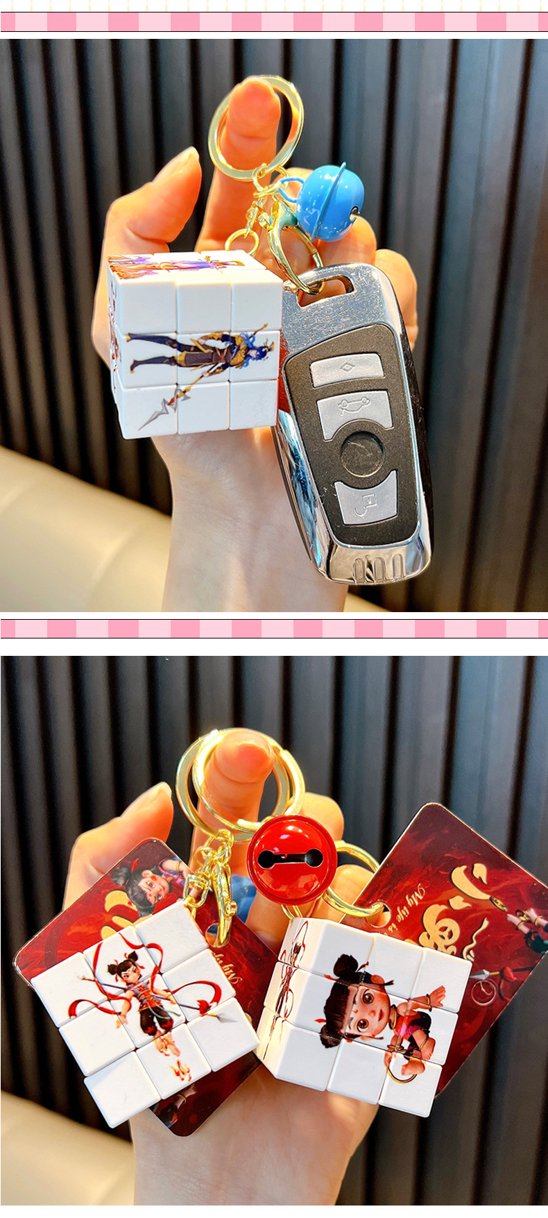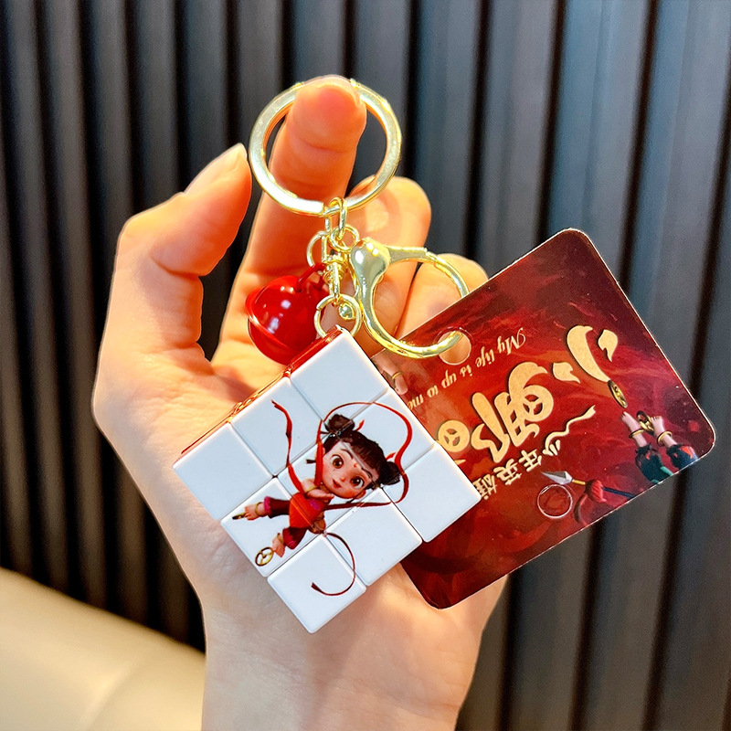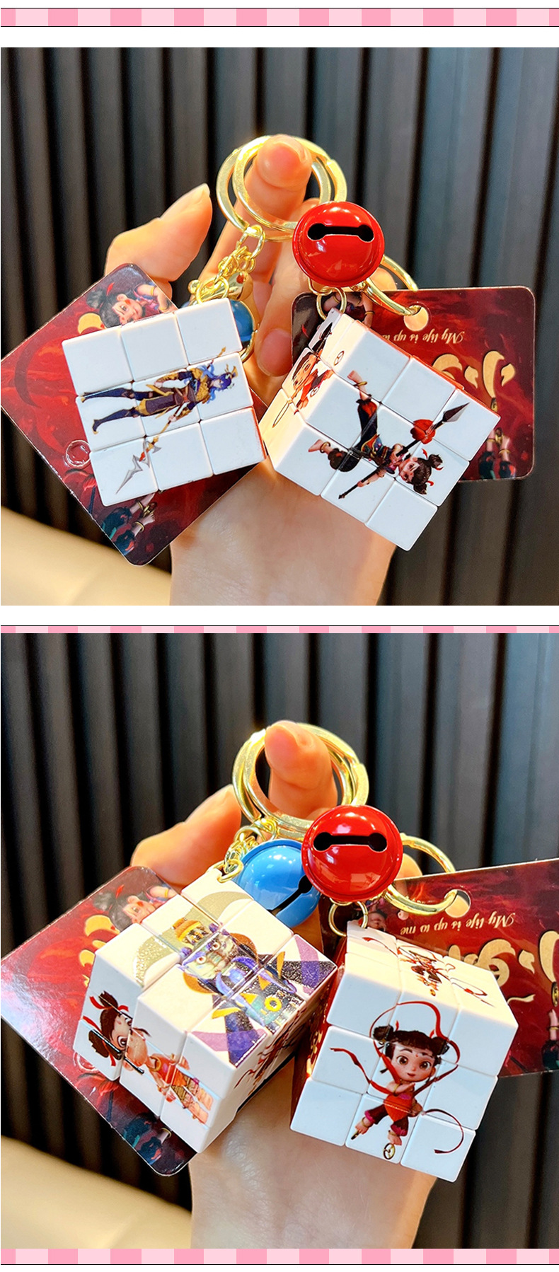 정품 공인 젊은 영웅 리틀 네자 루빅의 큐브 키 체인 감압 장난감 가방 펜던트 인형 기계 작은 선물
