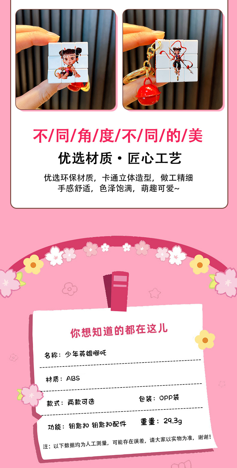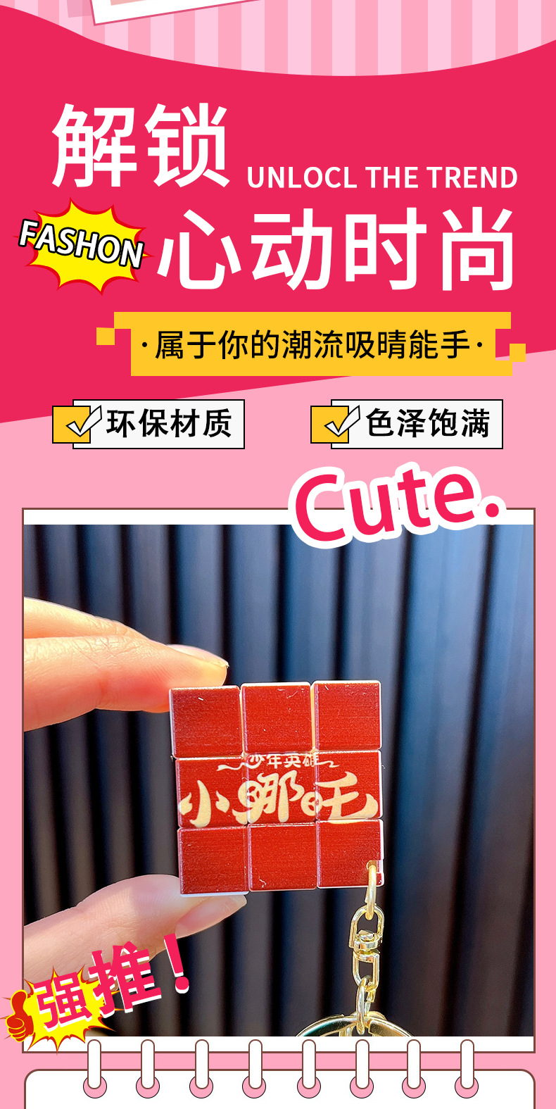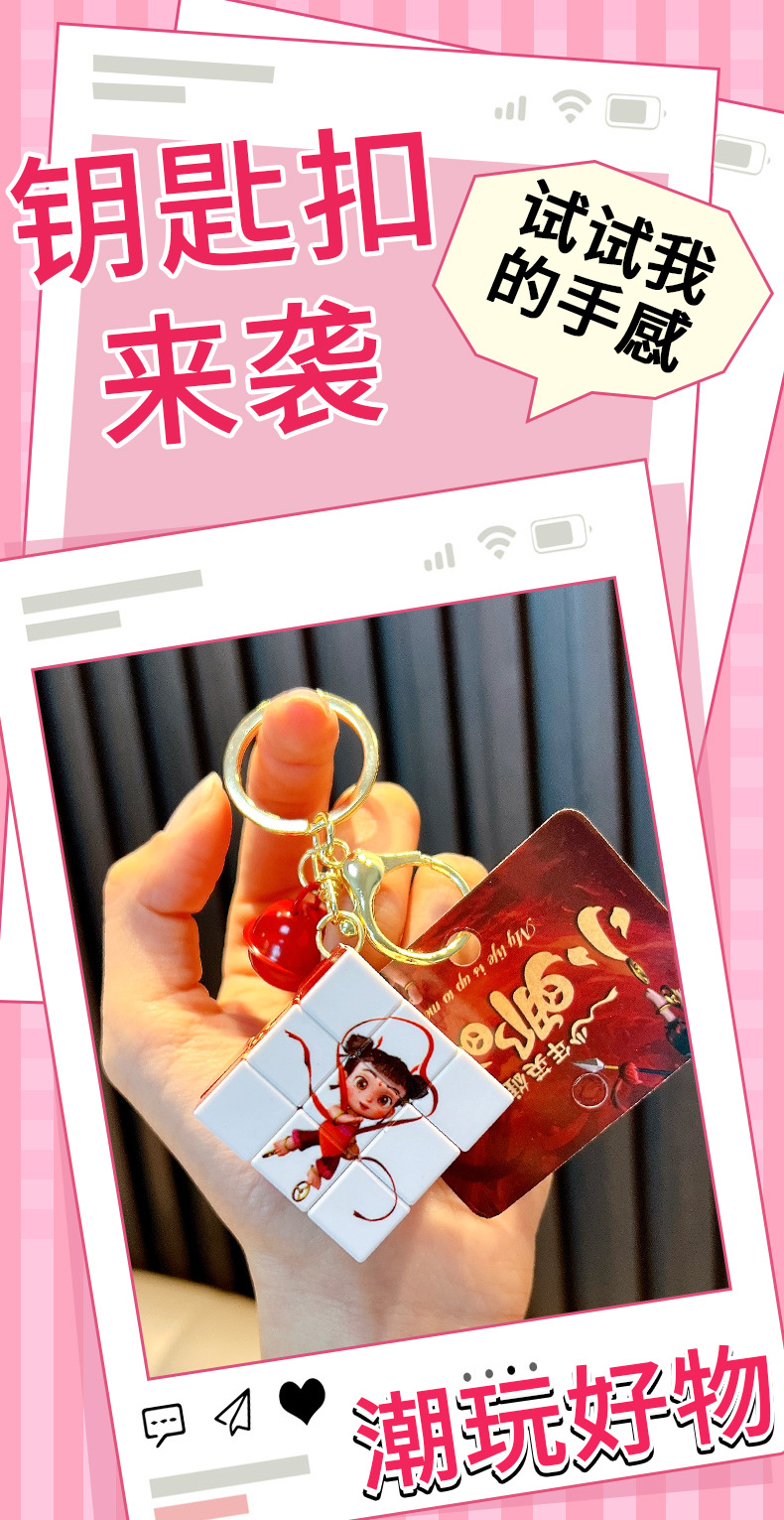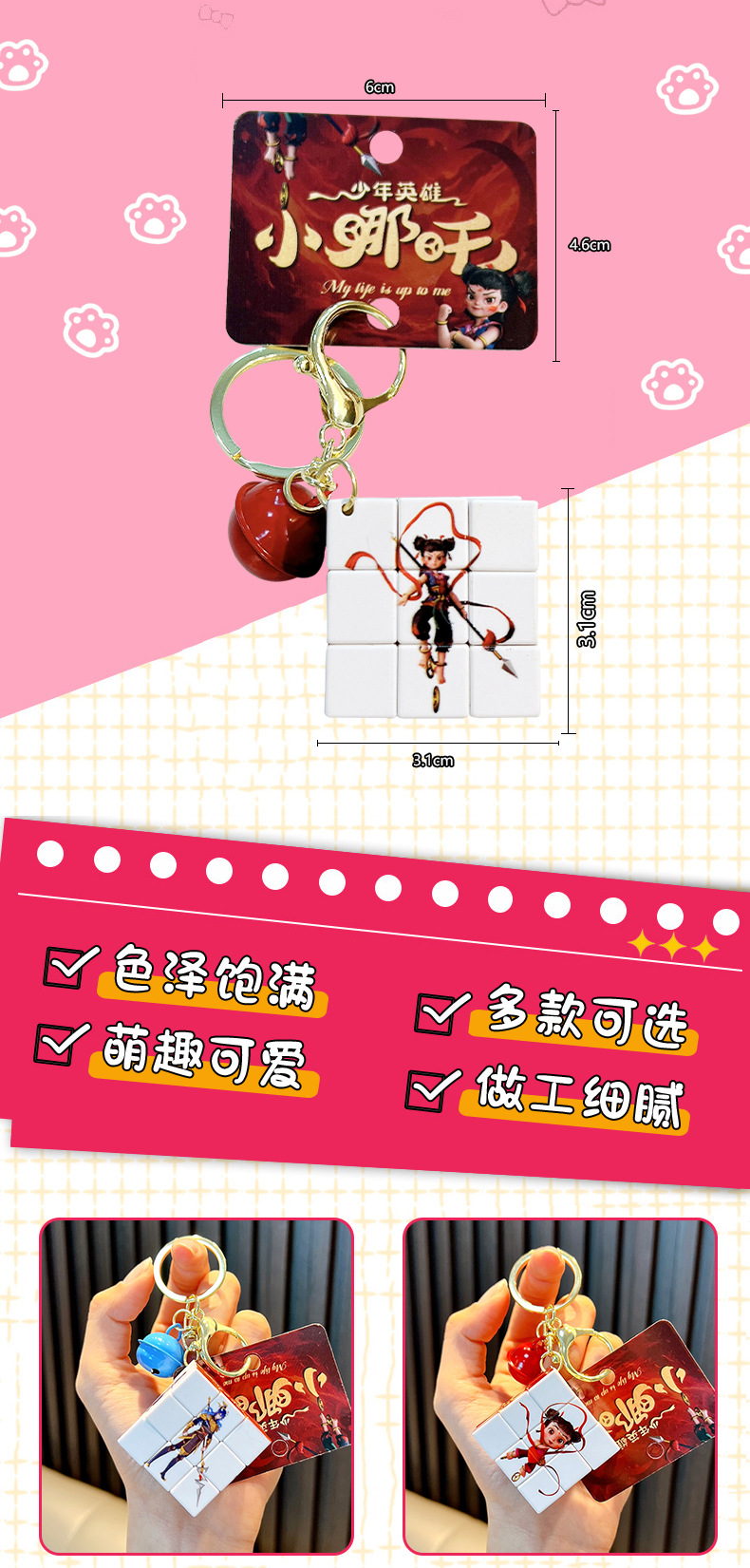 정품 공인 젊은 영웅 리틀 네자 루빅의 큐브 키 체인 감압 장난감 가방 펜던트 인형 기계 작은 선물