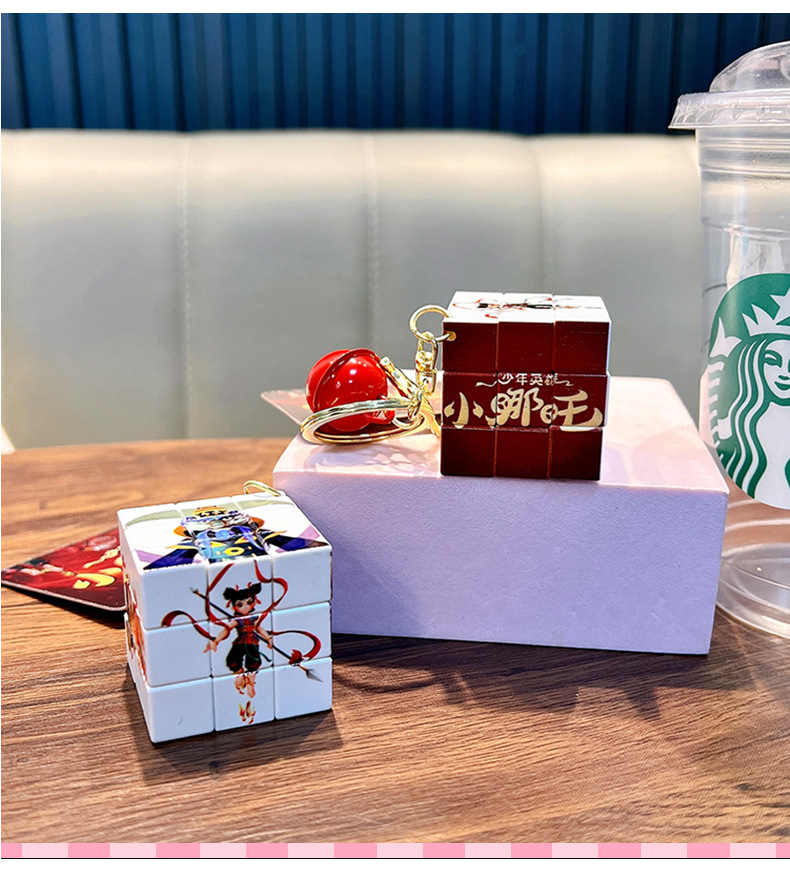 정품 공인 젊은 영웅 리틀 네자 루빅의 큐브 키 체인 감압 장난감 가방 펜던트 인형 기계 작은 선물스토어 가기