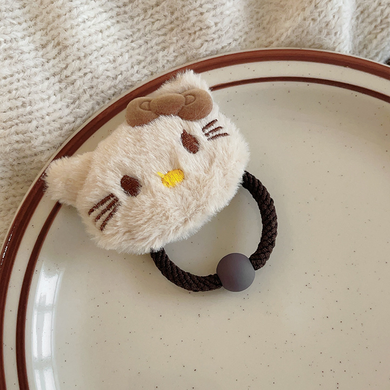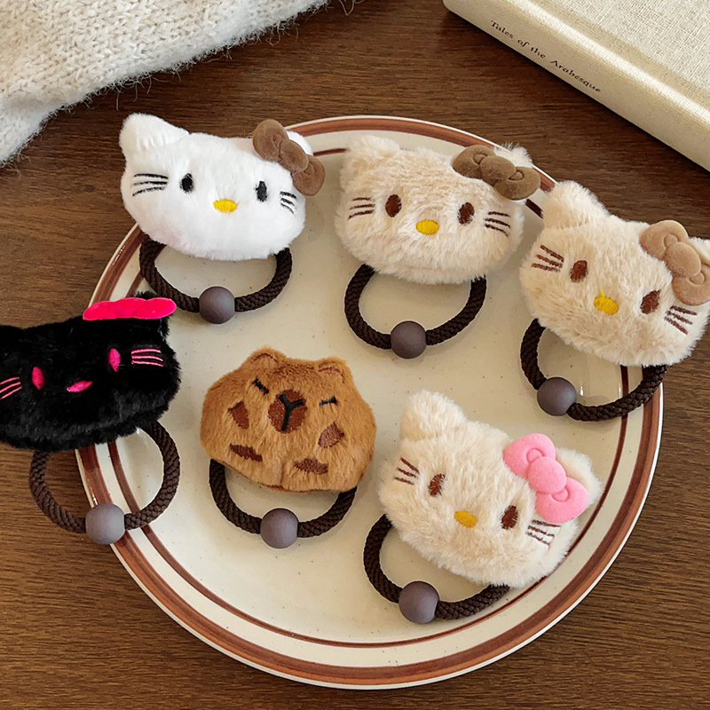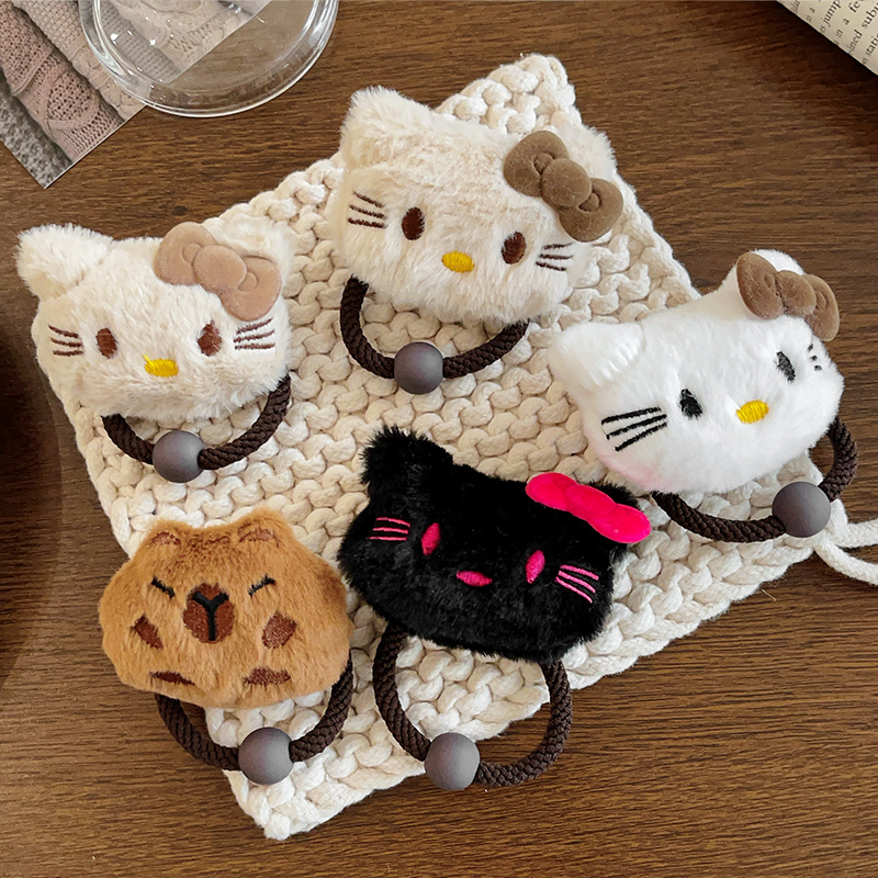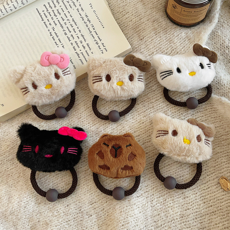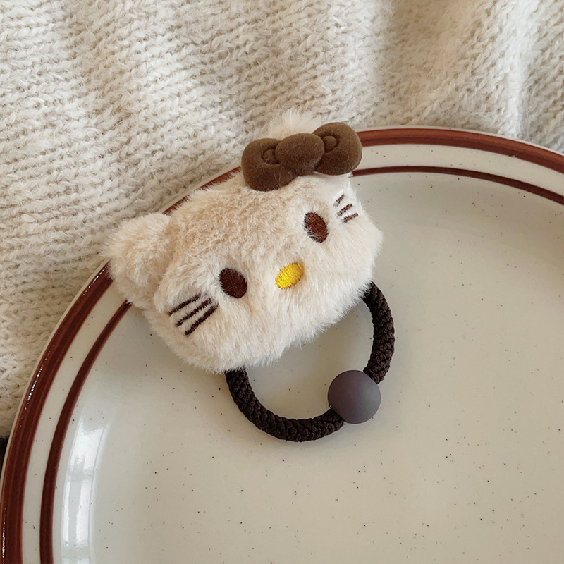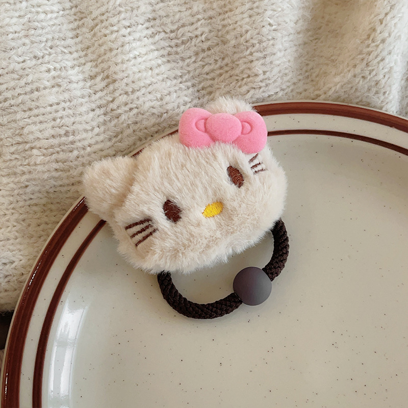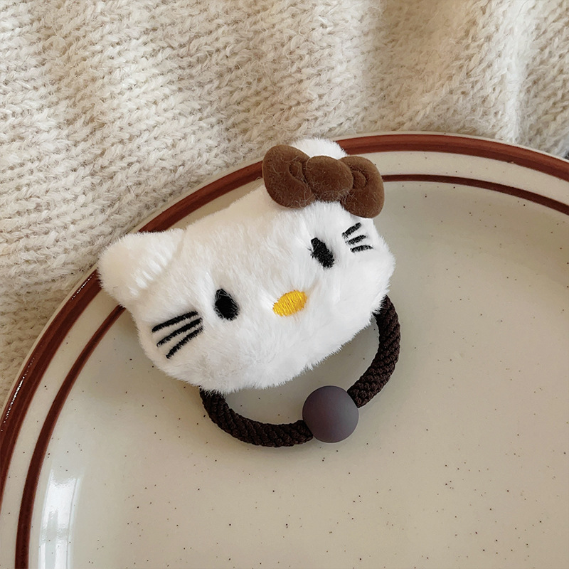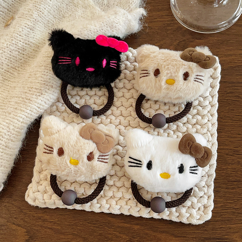활 헬로 키티 고양이 헤어 링 여성 만화 넥타이 로프 플러시 Kt 고양이 가죽 스트랩 헤어 헤드웨어