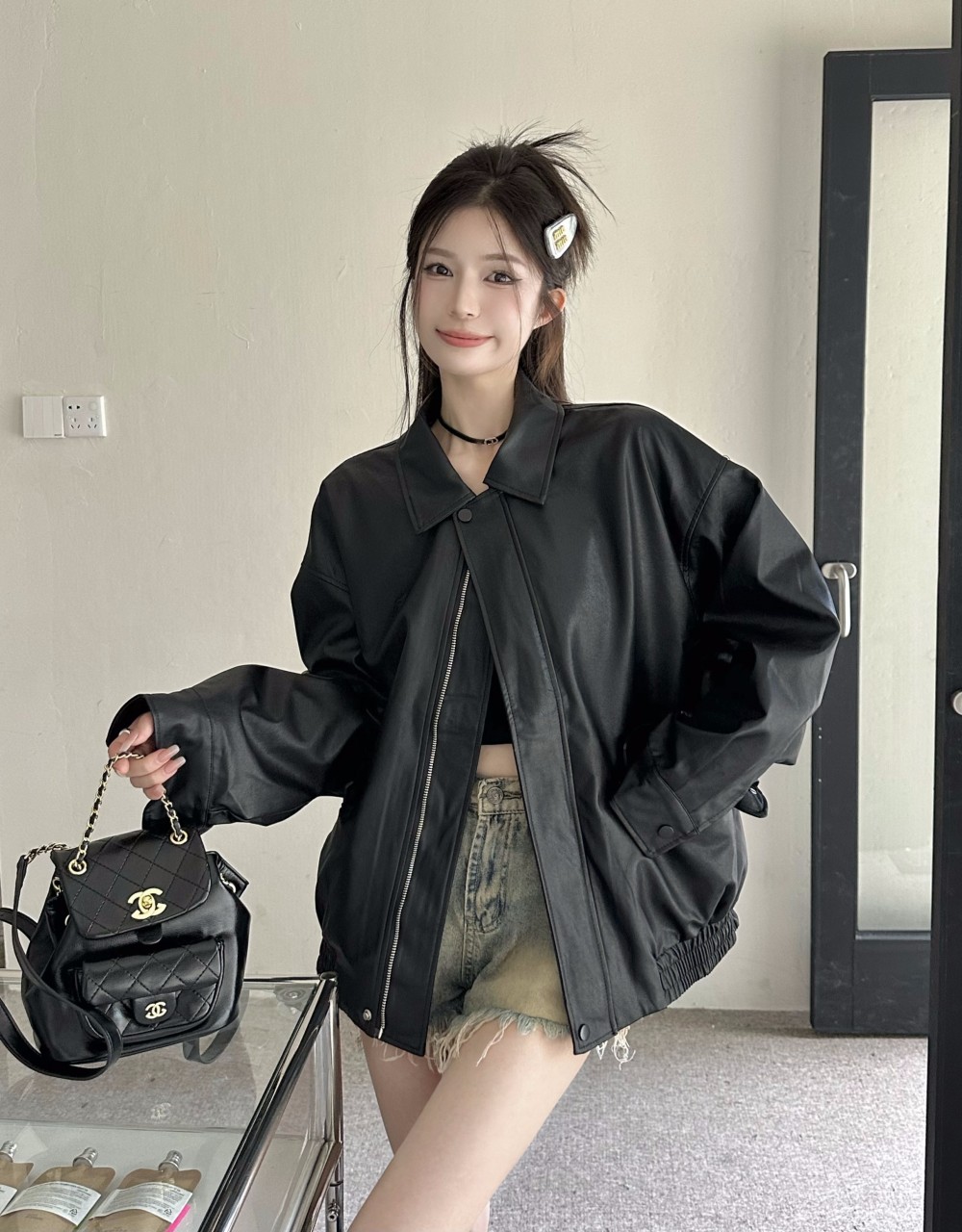빈티지 아메리칸 스타일 다크 브라운 가죽 자켓 코트 여성용 봄 블랙 달콤한 쿨 스타일 오토바이 PU 가죽 느슨한 긴 소매 탑