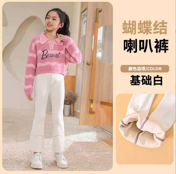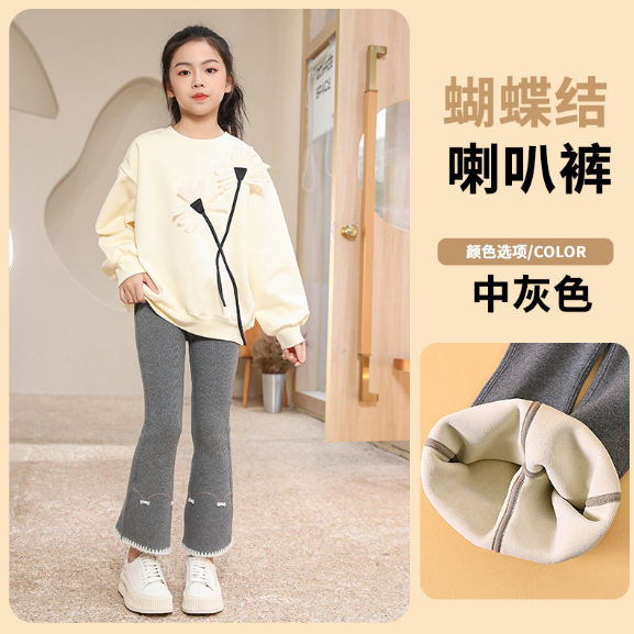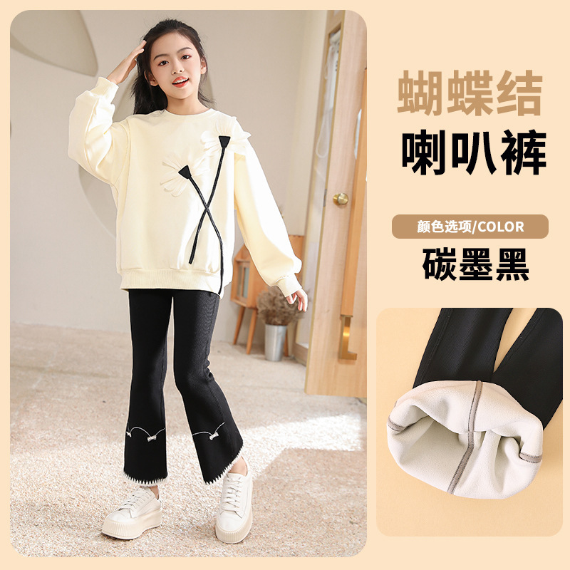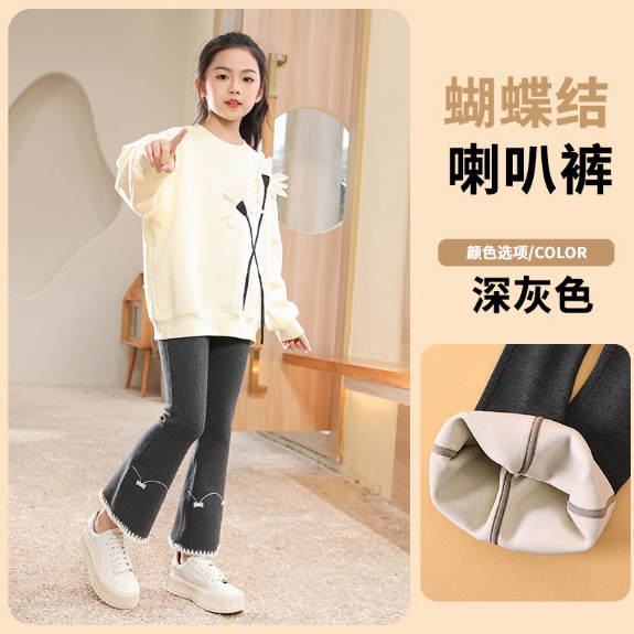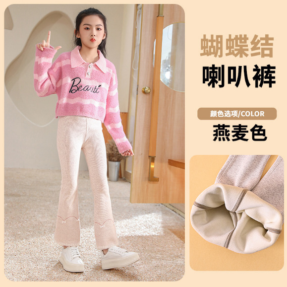 소녀 레깅스 봄과 가을 아기 얇은 벨벳 바지 넓은 다리 바지 중간 두꺼운 새 스타일 소녀 플레어 바지스토어 가기