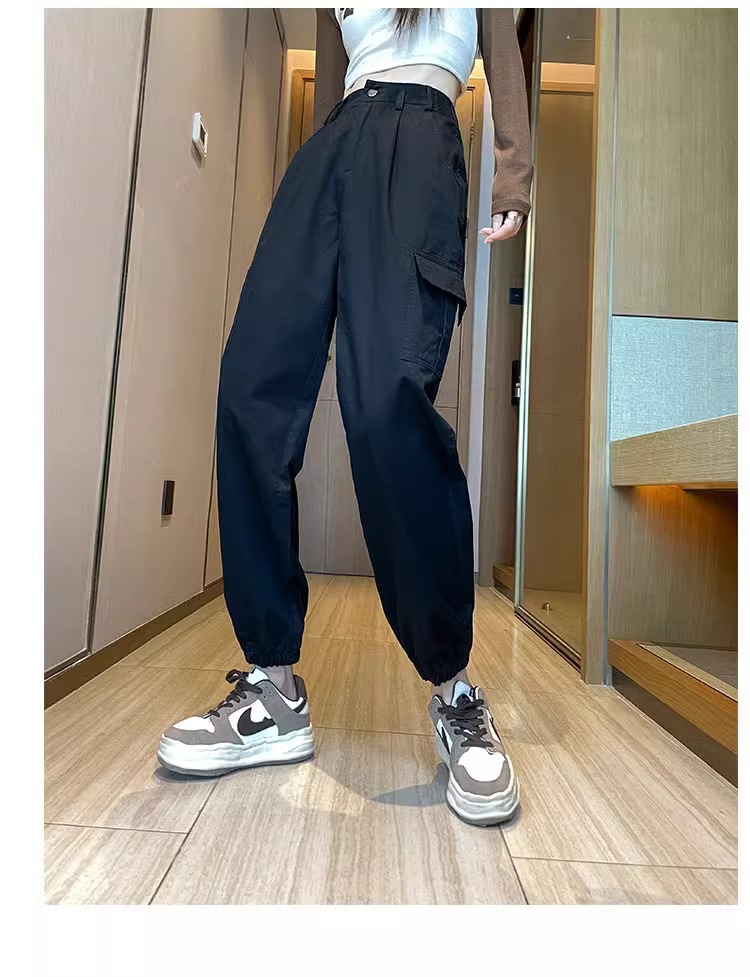 블랙 아메리칸 스타일 작업복 여성용 가을 2025 신상 순면 하이웨이스트 슬림핏 루즈핏 조거 팬츠 스포츠 등산 바지스토어 가기