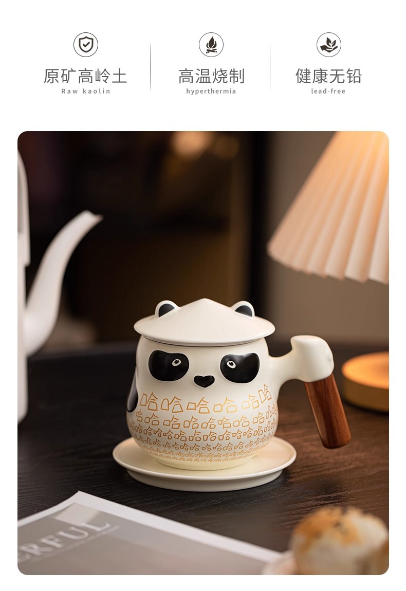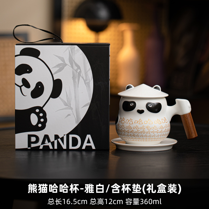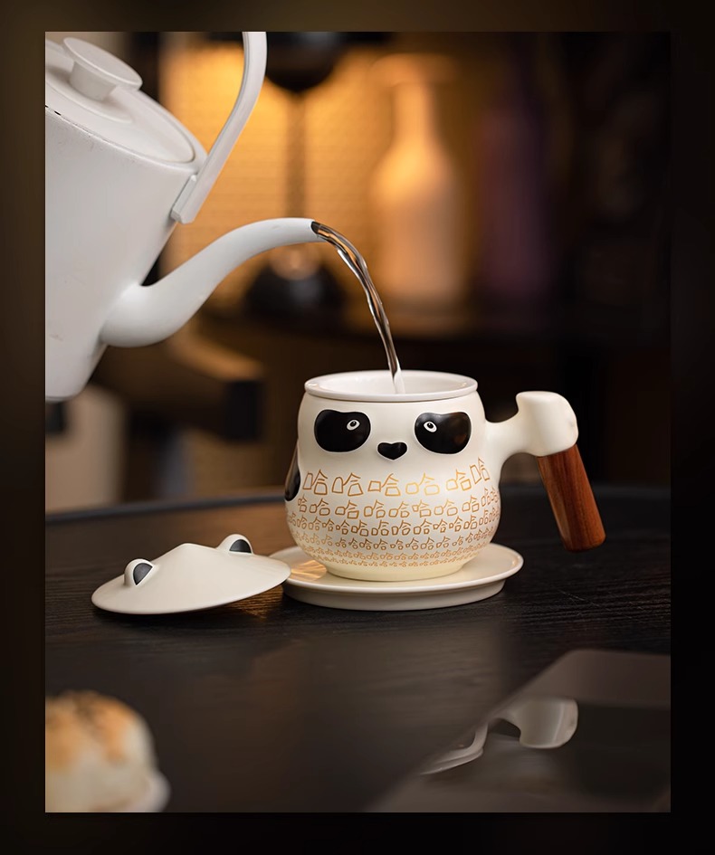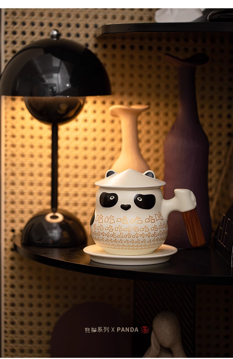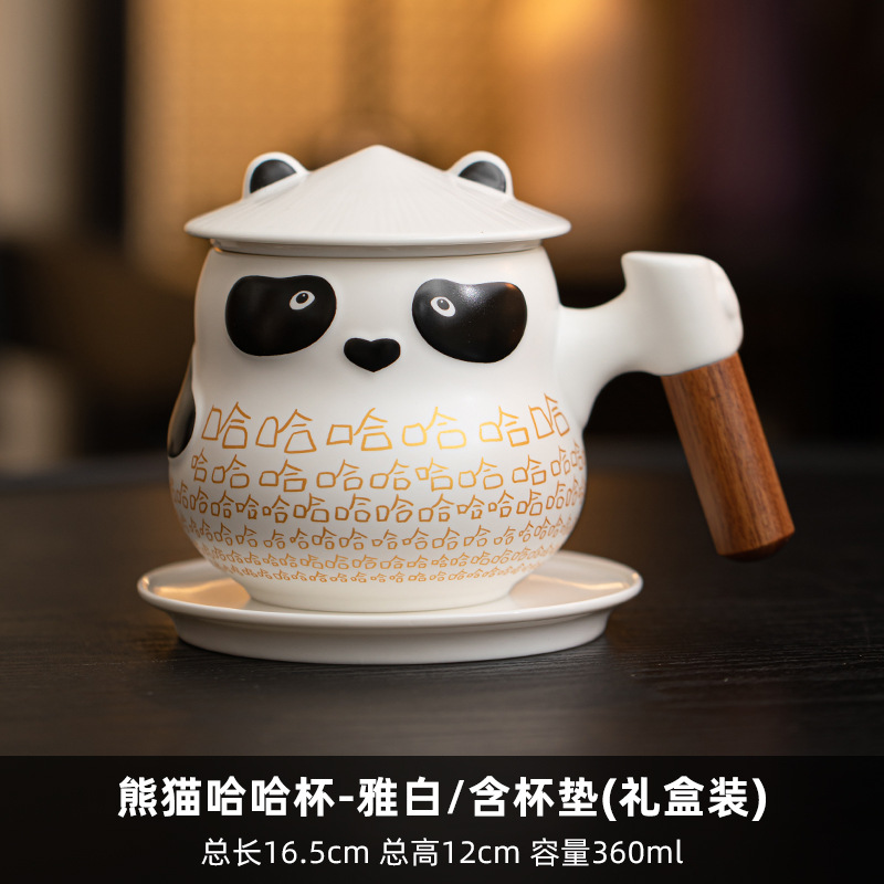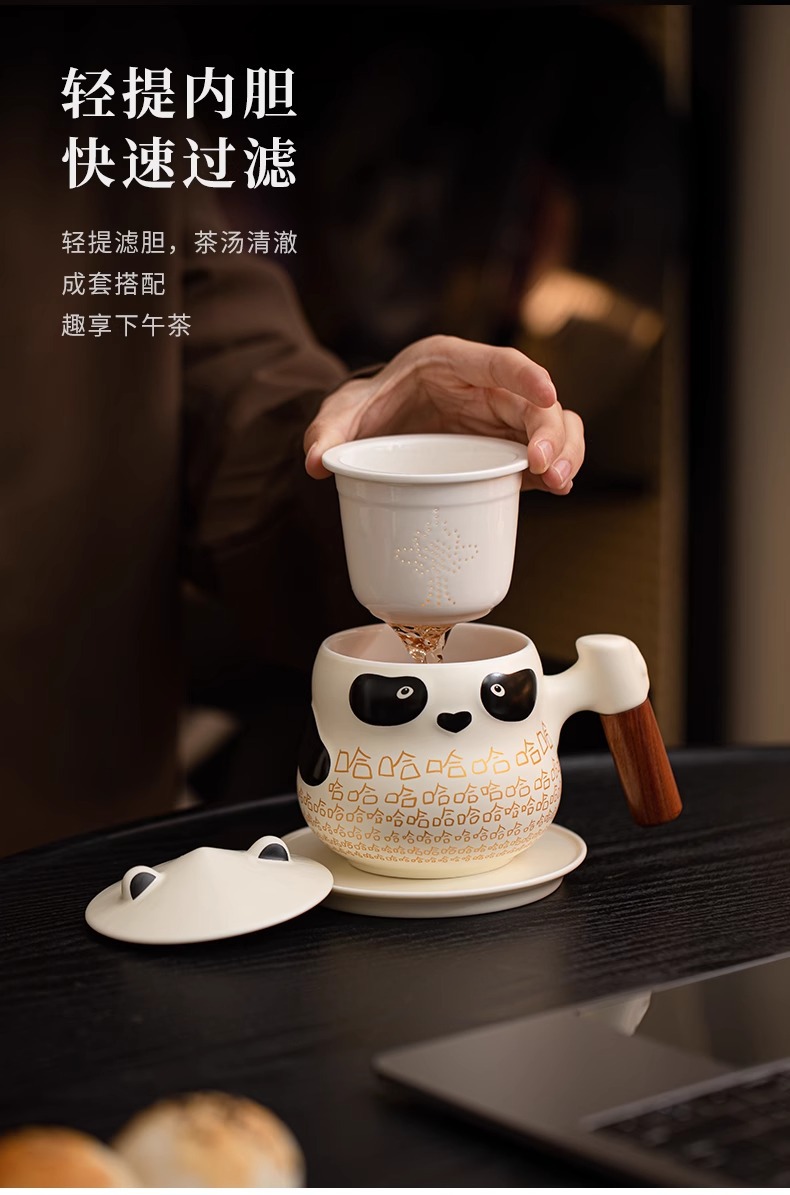 팬더 차 물 분리 컵 사무실 뚜껑 차 귀여운 세라믹 하하 머그잔 여성의 개인 커피스토어 가기