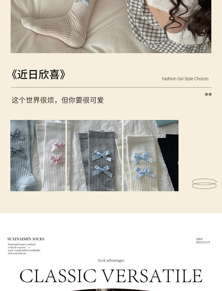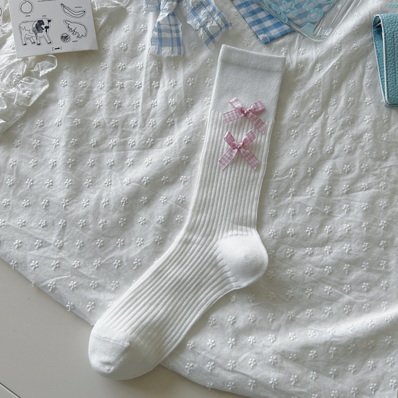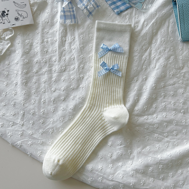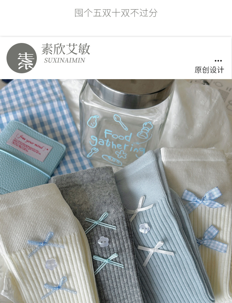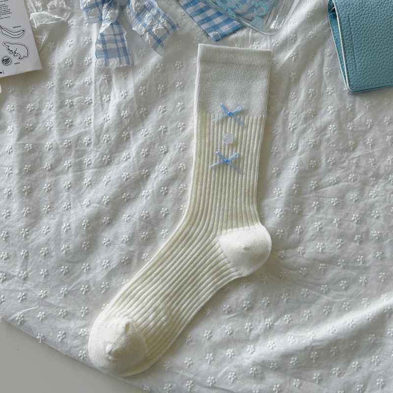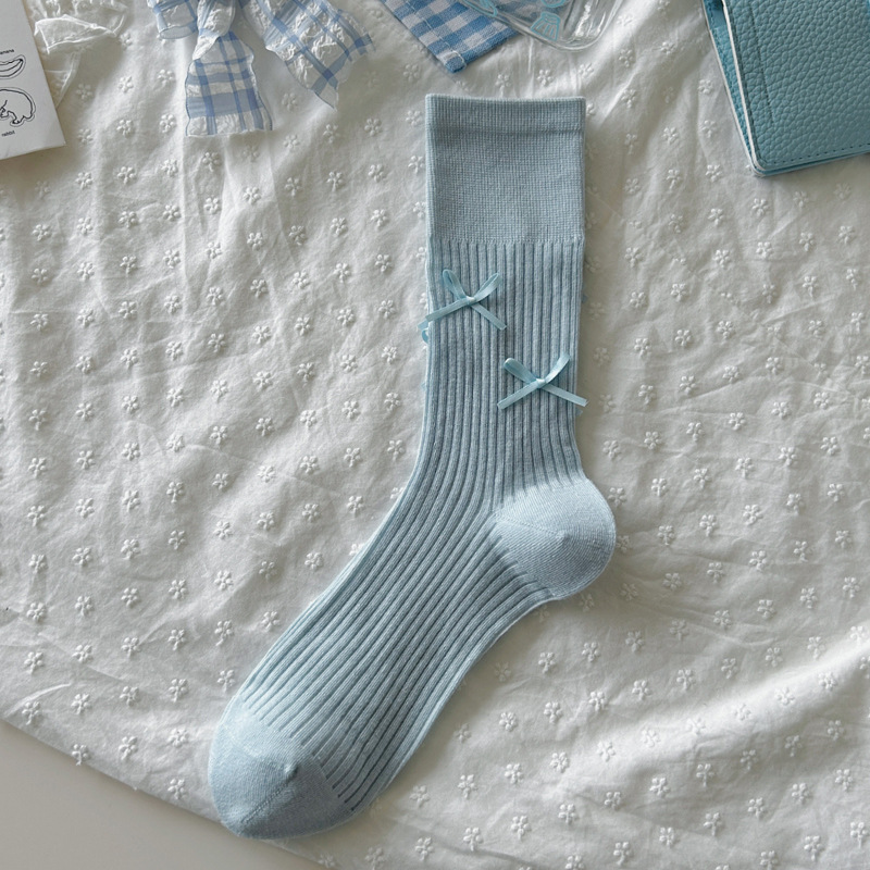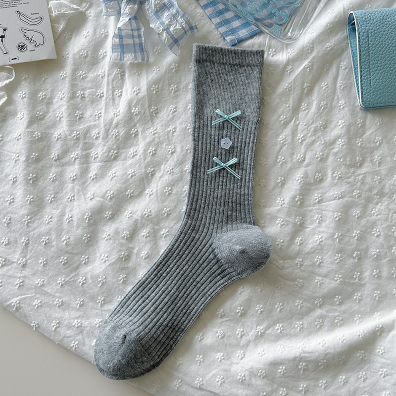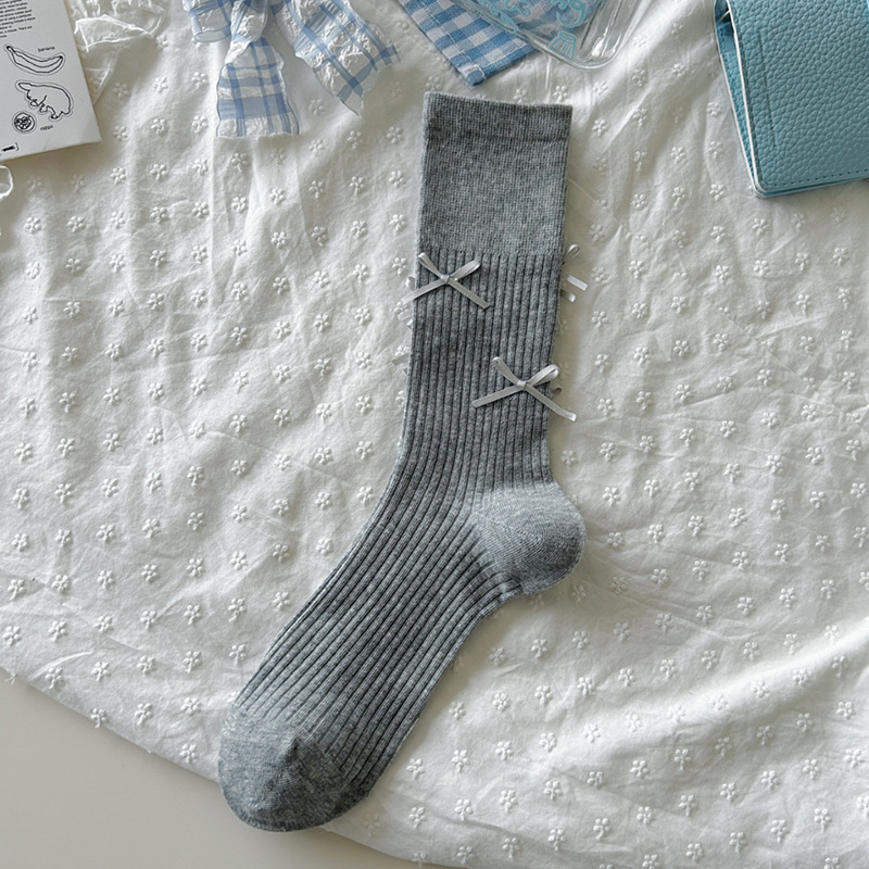 수시나이민 발레 스타일 얇은 양말 여성용 봄 가을 리본 리본매듭 미우 스타일 회색 중간 길이 양말스토어 가기