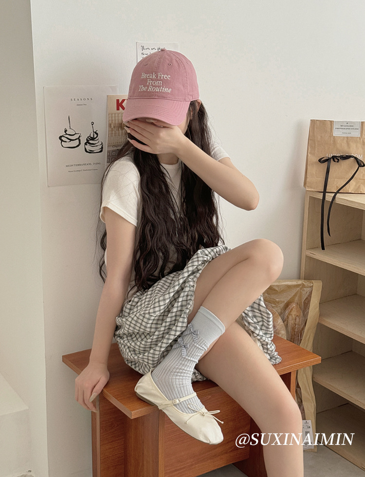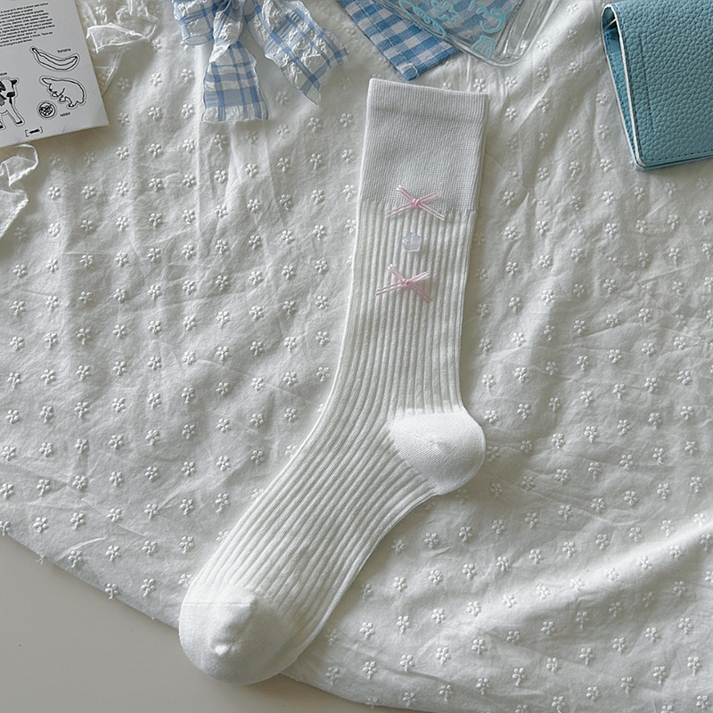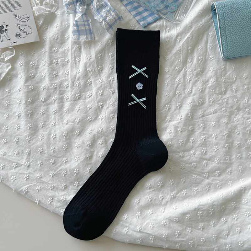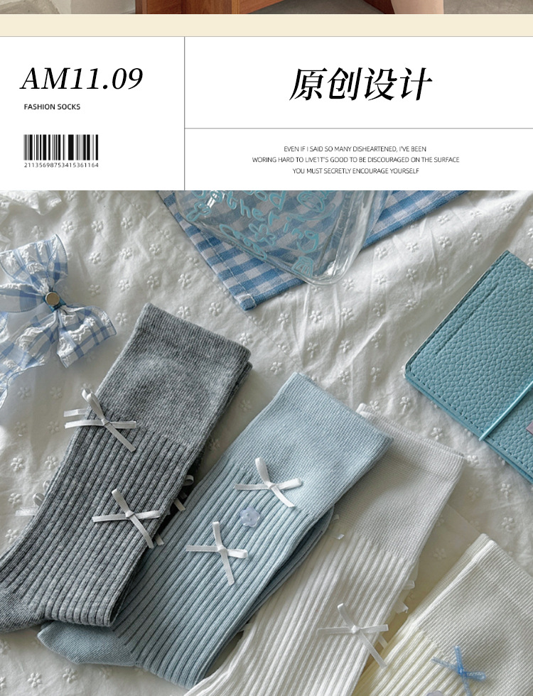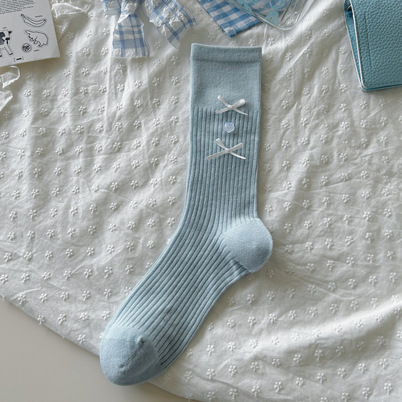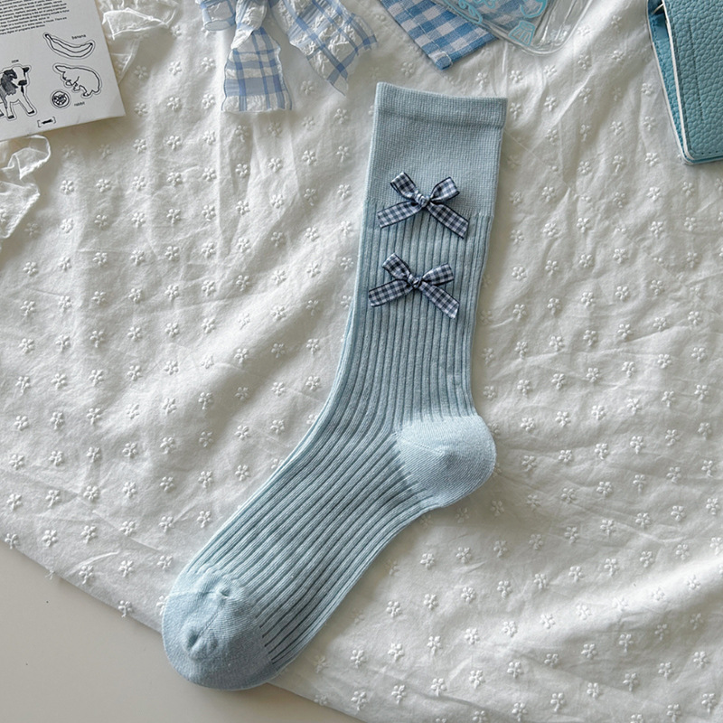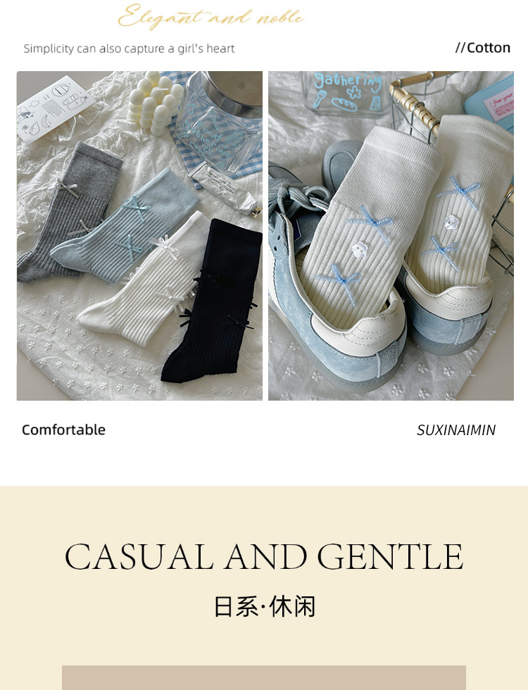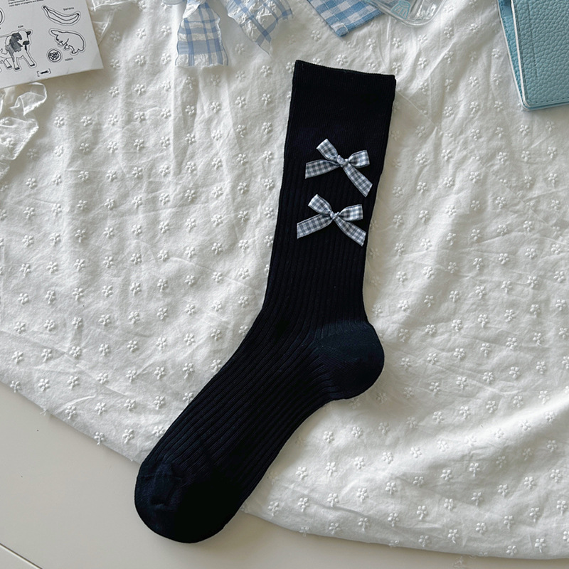 수시나이민 발레 스타일 얇은 양말 여성용 봄 가을 리본 리본매듭 미우 스타일 회색 중간 길이 양말스토어 가기