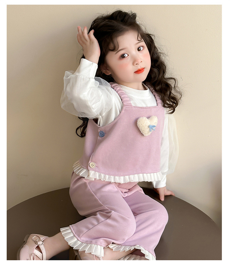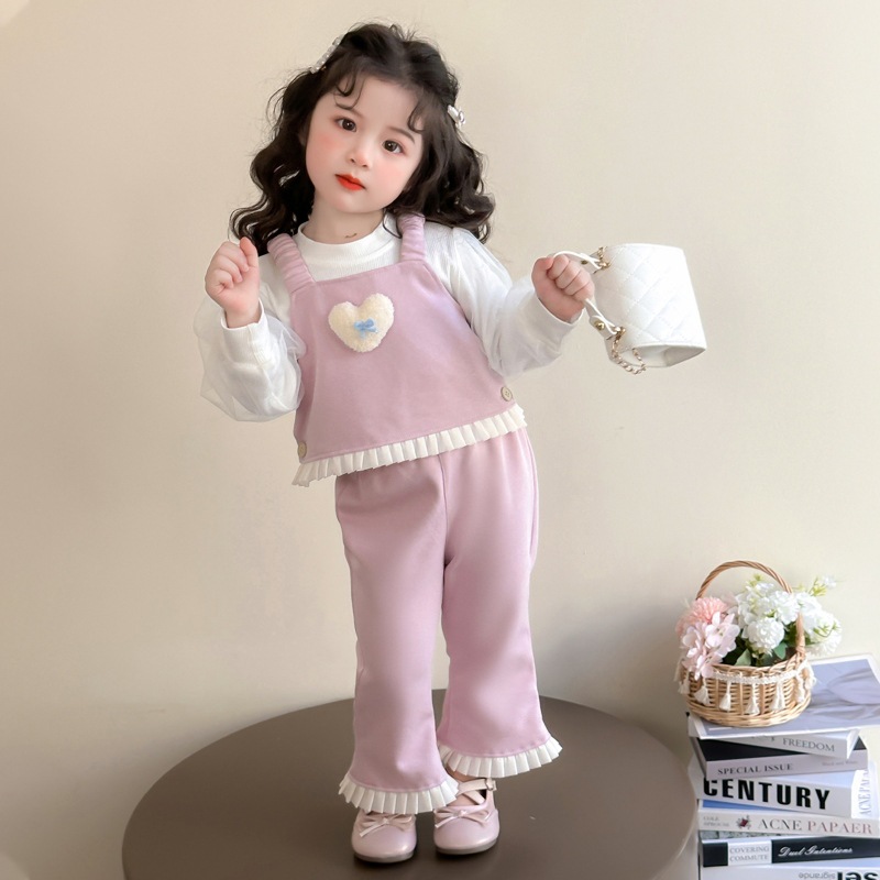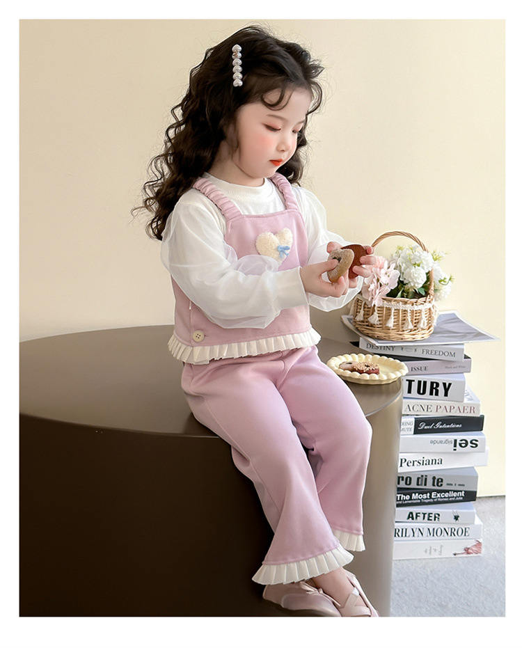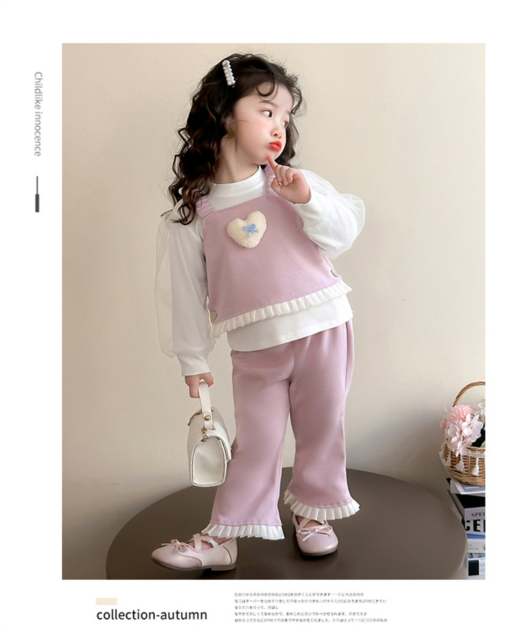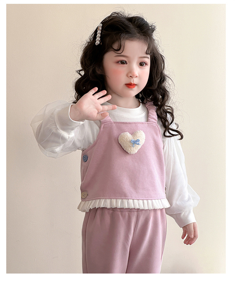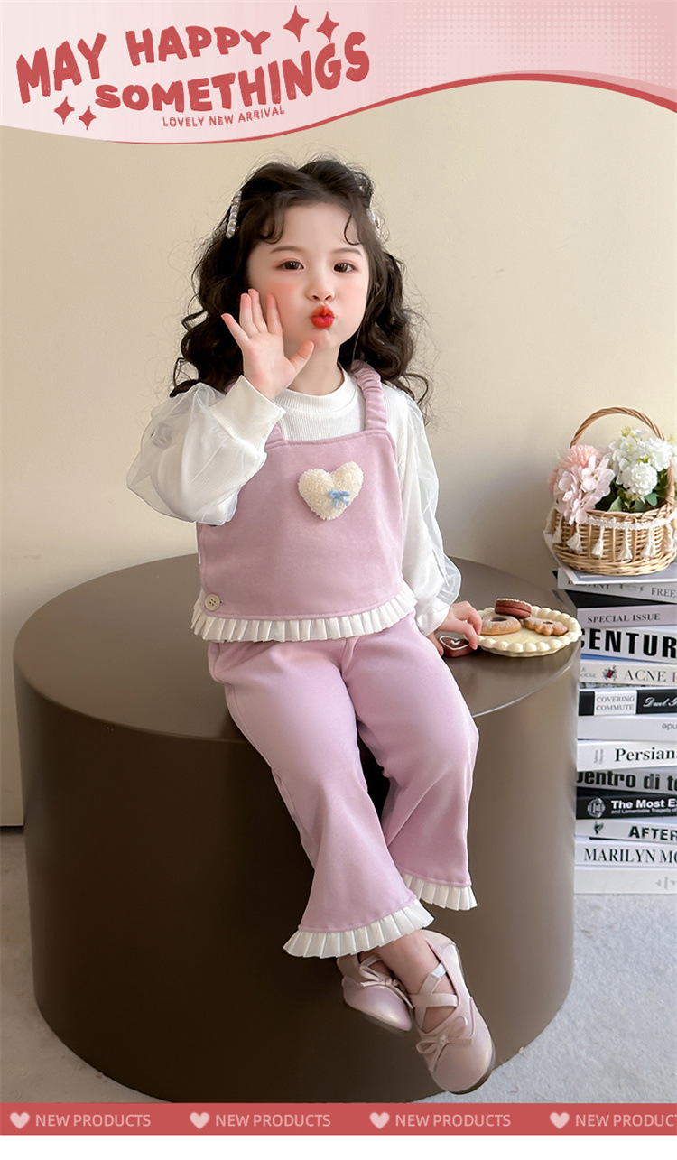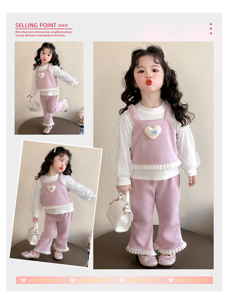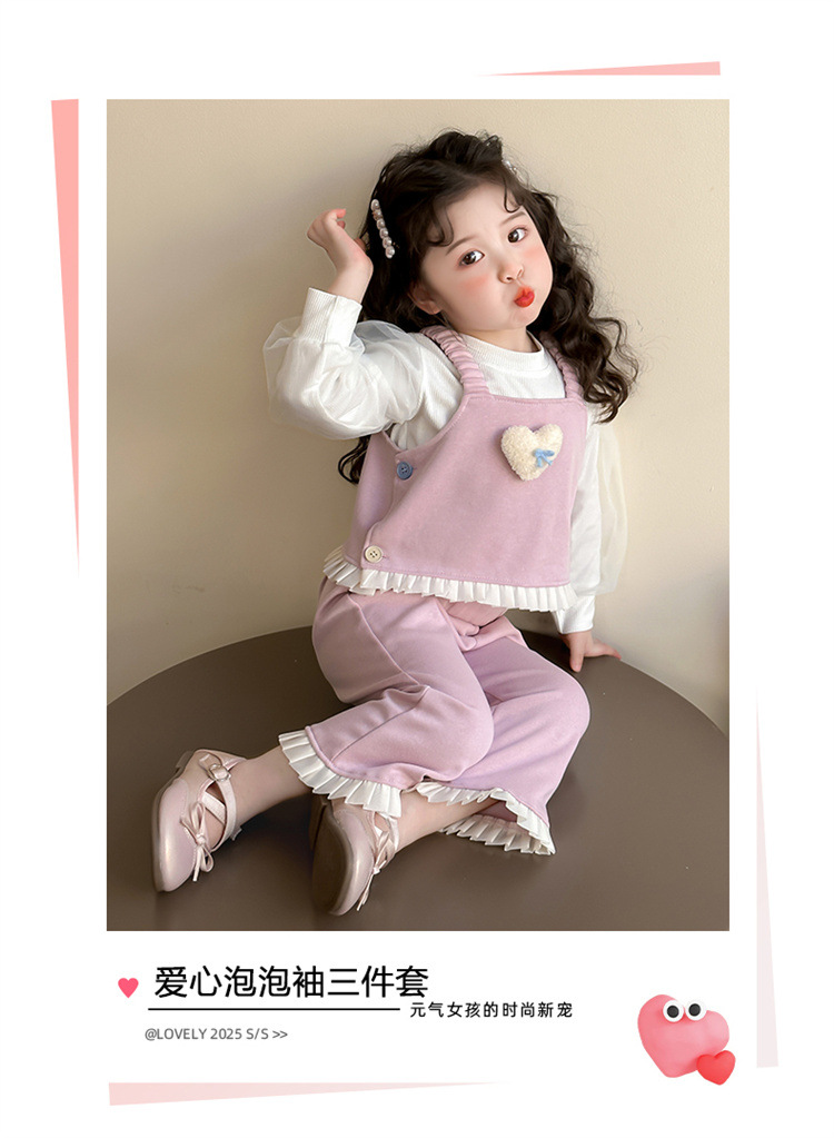 소녀 러브 퍼프 슬리브 3 피스 세트 봄과 가을 2025 새로운 패션 어린 소녀 세련된 세트스토어 가기