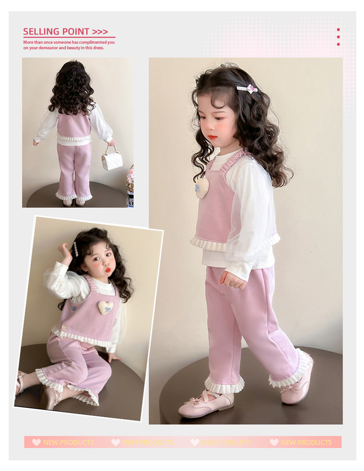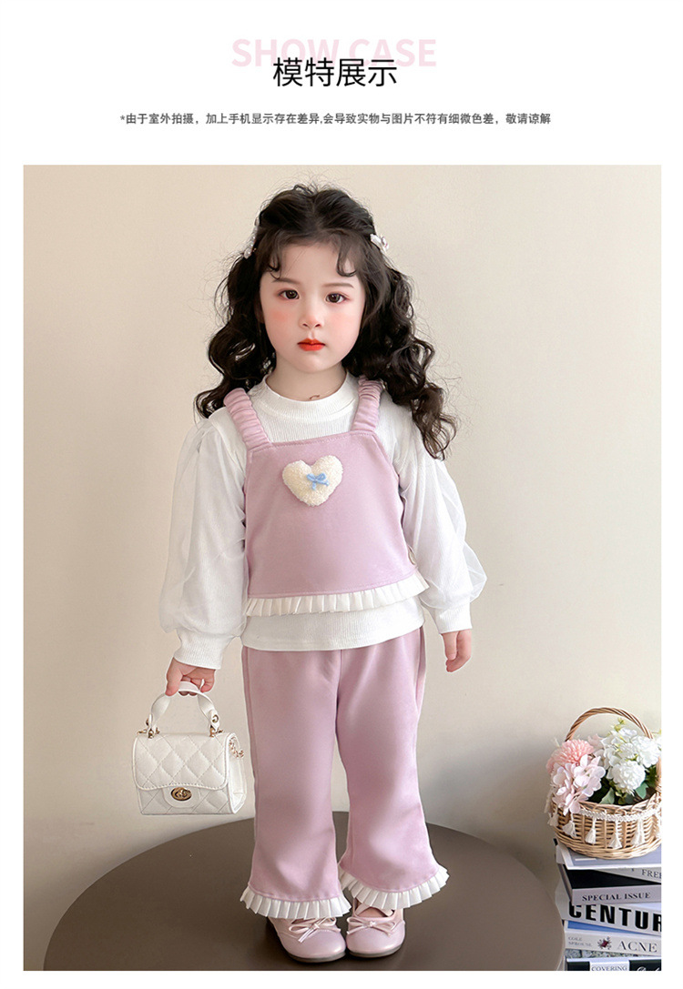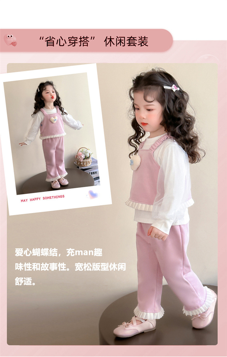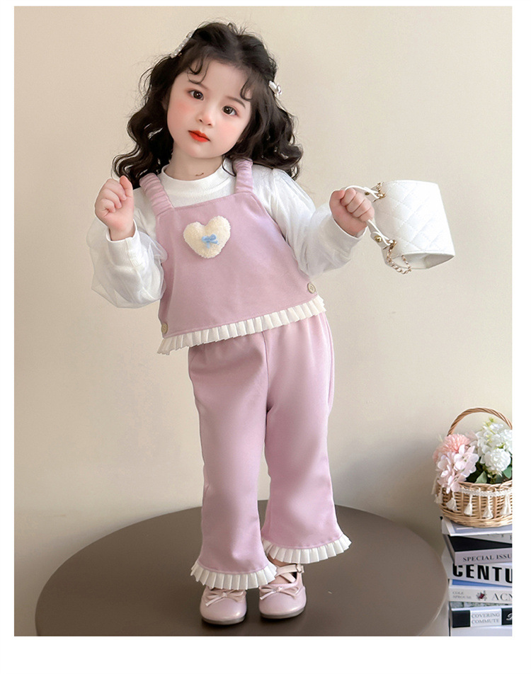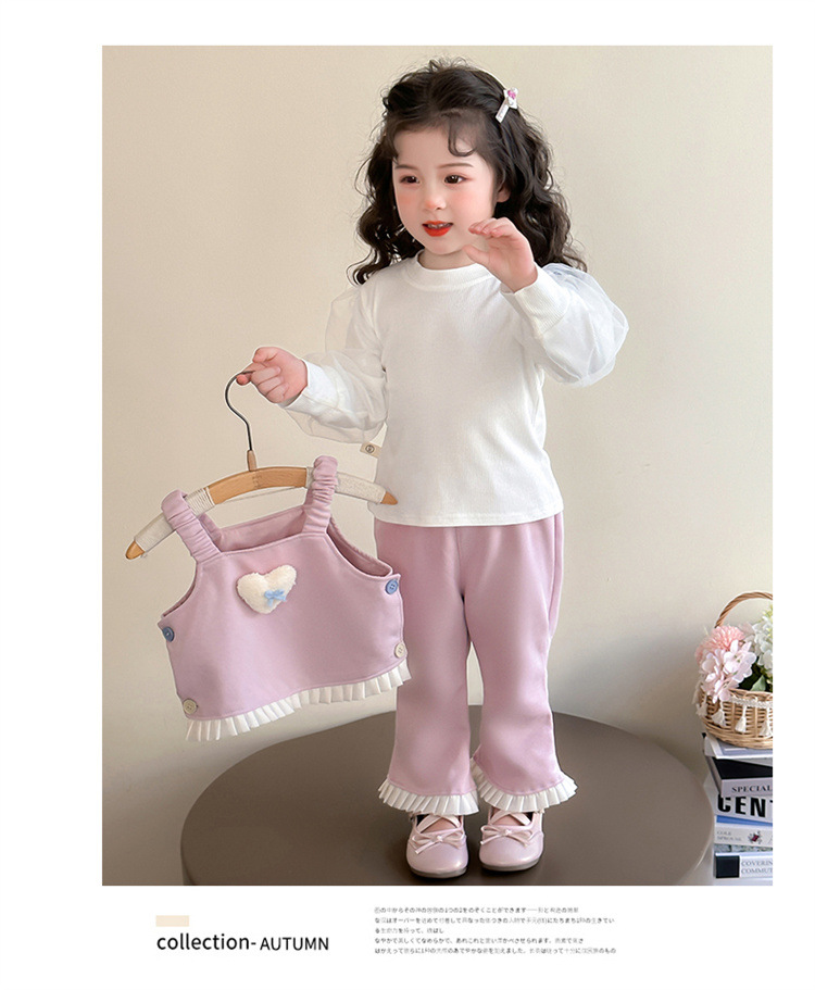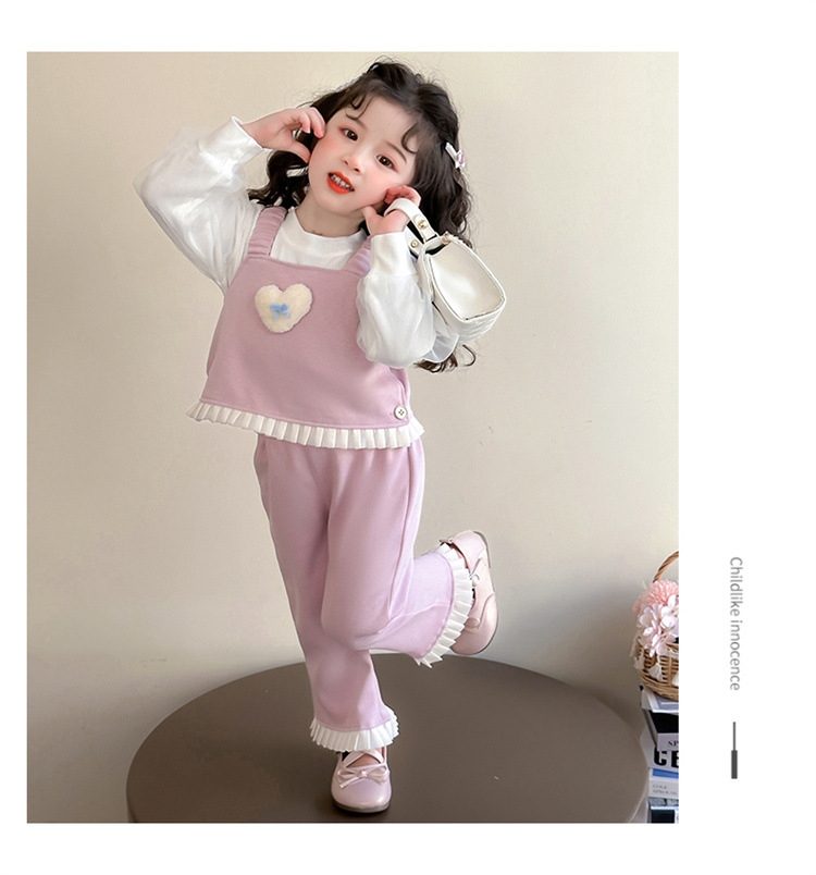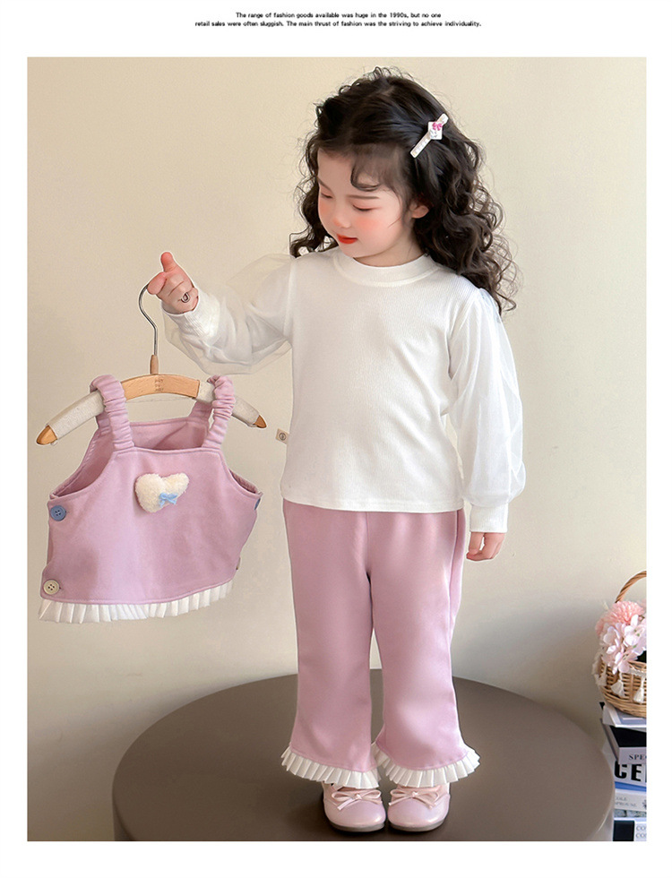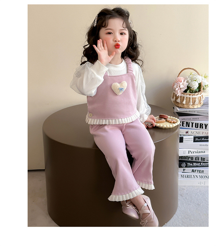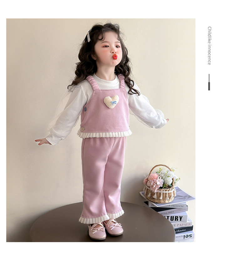 소녀 러브 퍼프 슬리브 3 피스 세트 봄과 가을 2025 새로운 패션 어린 소녀 세련된 세트스토어 가기
