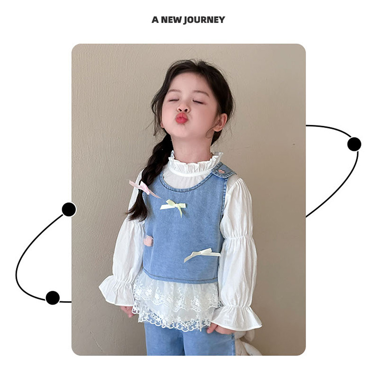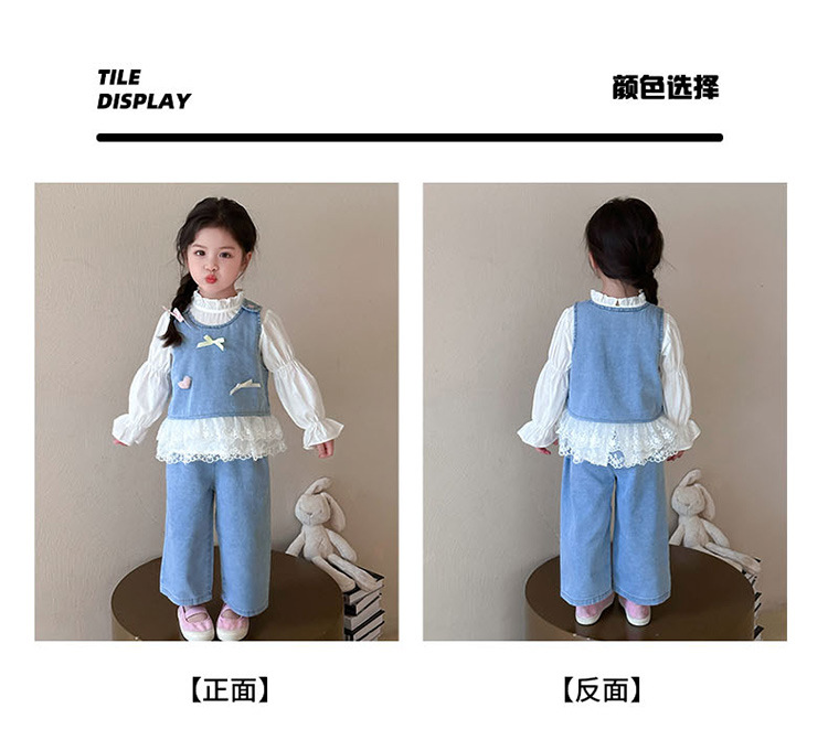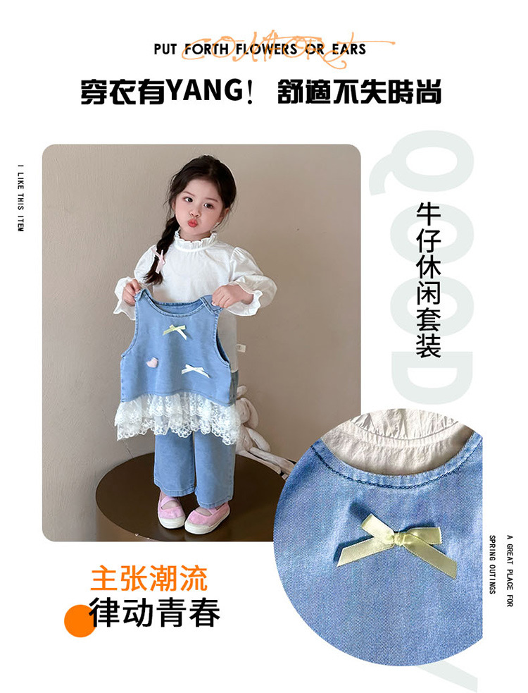 여자 세트 봄 착용 아기 한국 조끼 넓은 다리 바지 2025 새로운 서양식 아동복 어린이 데님 3 종 세트스토어 가기