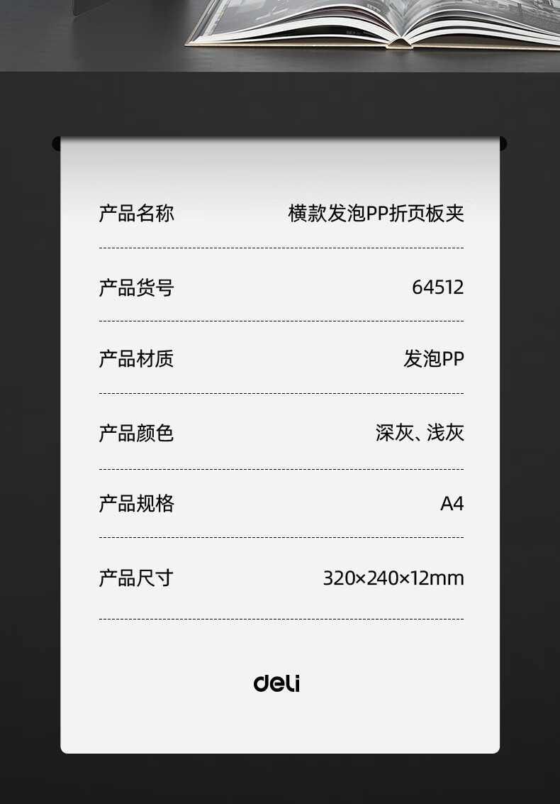 델리 64512/64513 수평 폼 PP 폴더/A4 두꺼운 하드 폴더/테스트 용지 데이터