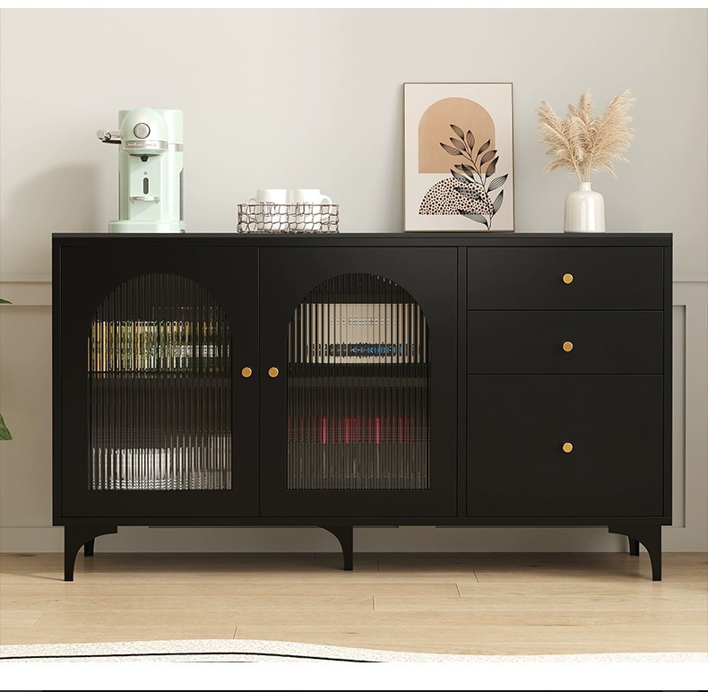 사이드 보드 캐비닛 블랙 주방 보관 캐비닛 록 보드 레트로 스타일 티 캐비닛 거실 바 다기능 벽 카운터