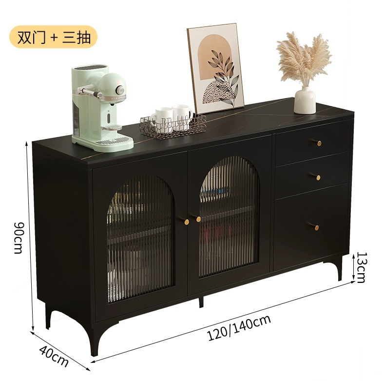 사이드 보드 캐비닛 블랙 주방 보관 캐비닛 록 보드 레트로 스타일 티 캐비닛 거실 바 다기능 벽 카운터스토어 가기