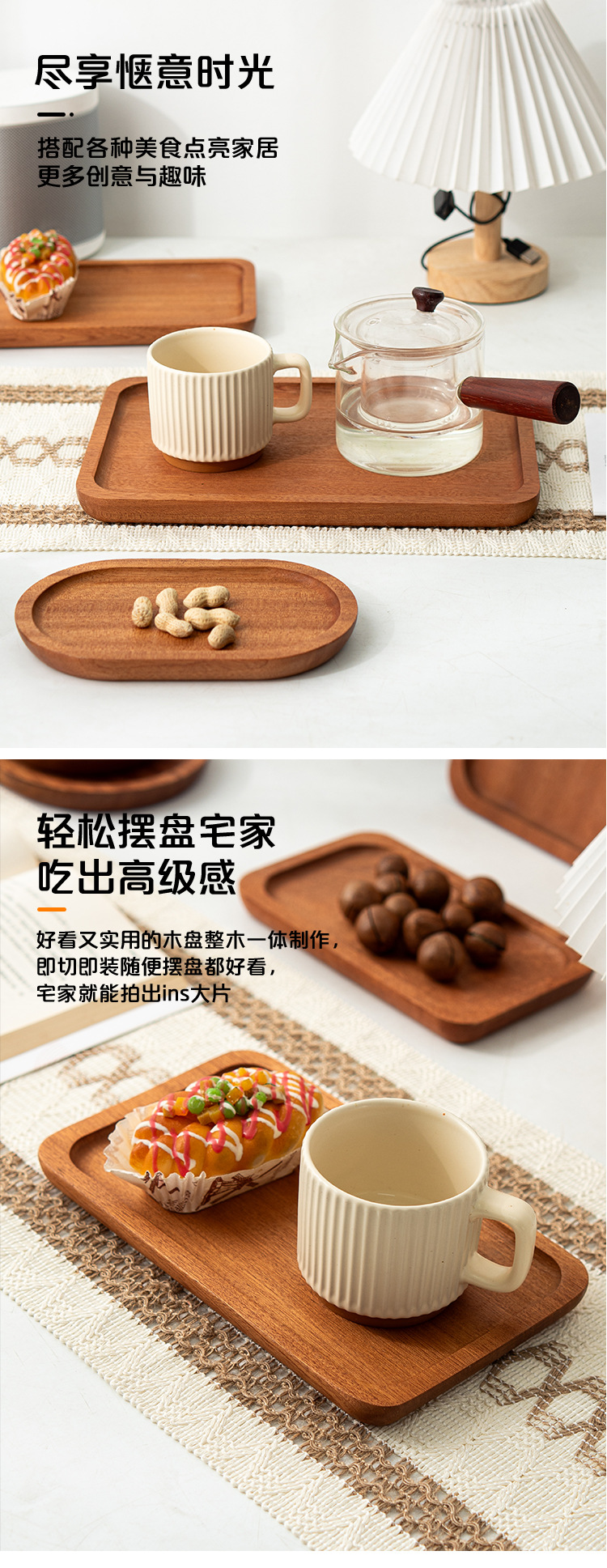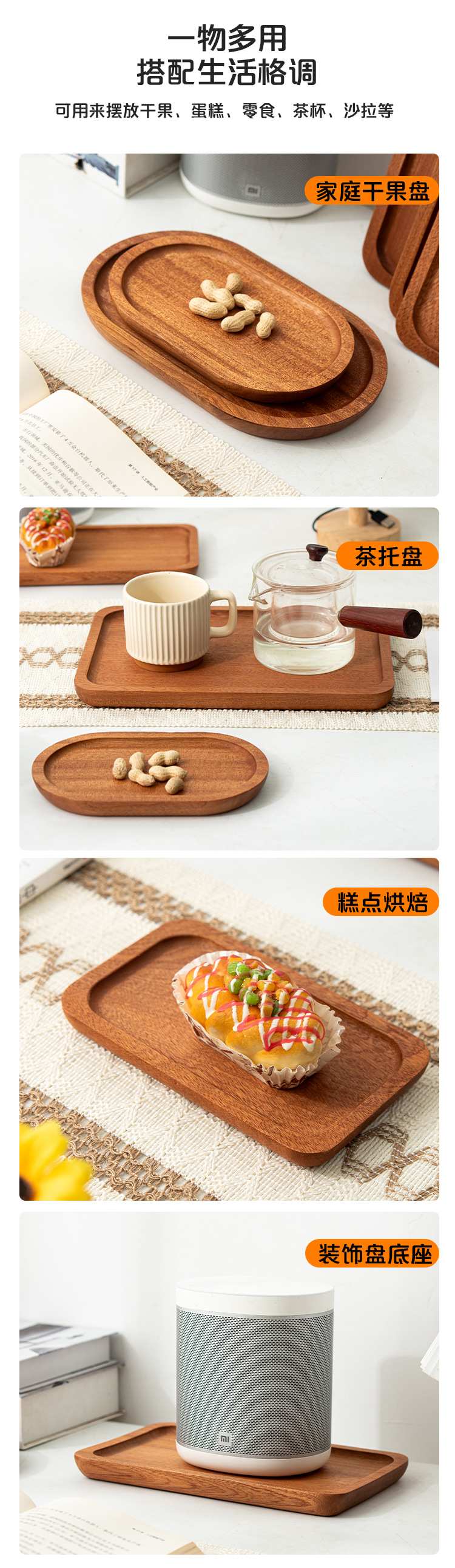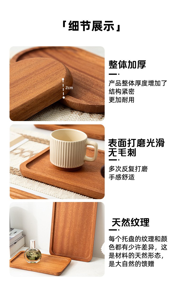 나무 샌달 우드 솔리드 우드 트레이 가정용 말린 과일 트레이 차 트레이 고급 서양 레스토랑 디저트 간식 직사각형 나무 트레이스토어 가기