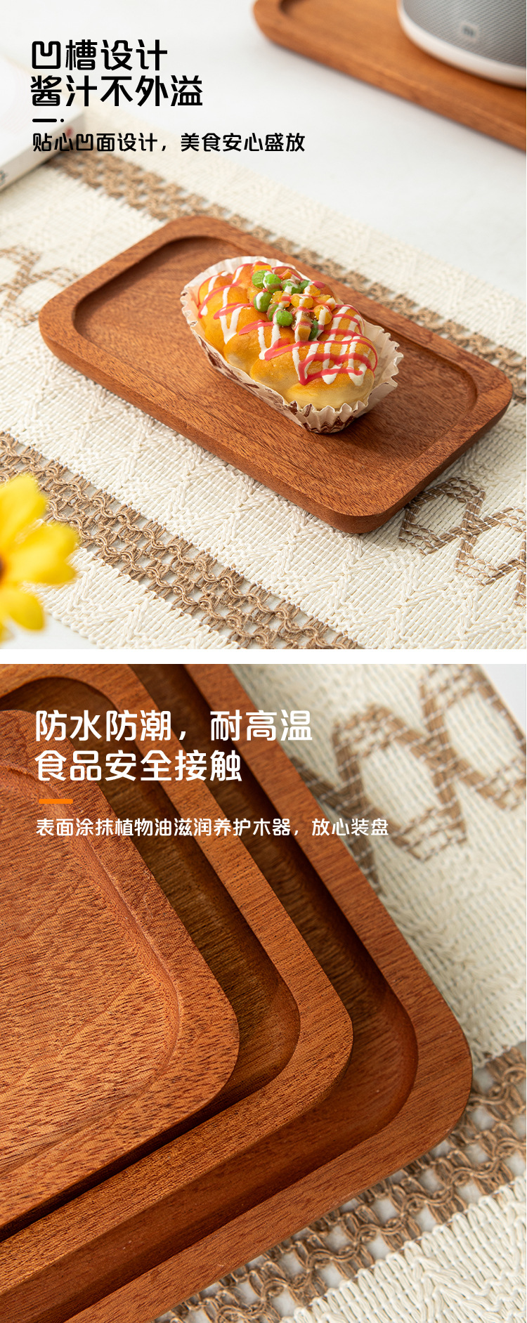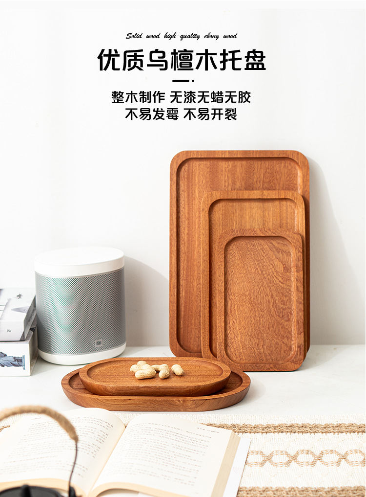 나무 샌달 우드 솔리드 우드 트레이 가정용 말린 과일 트레이 차 트레이 고급 서양 레스토랑 디저트 간식 직사각형 나무 트레이