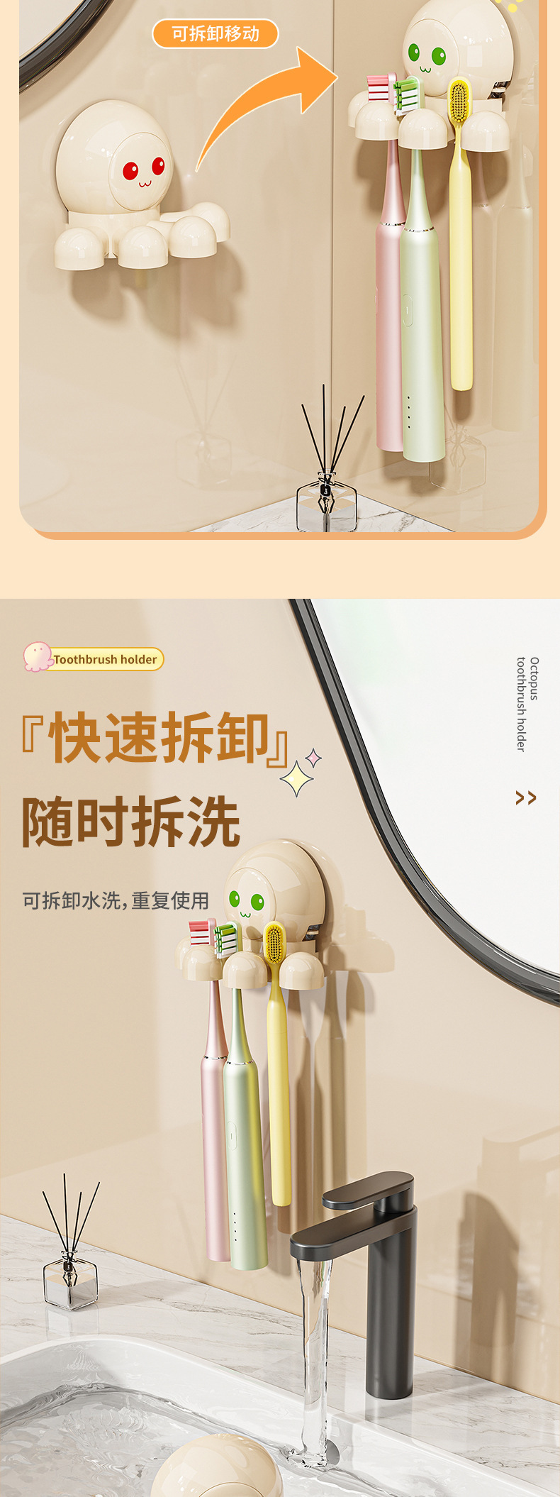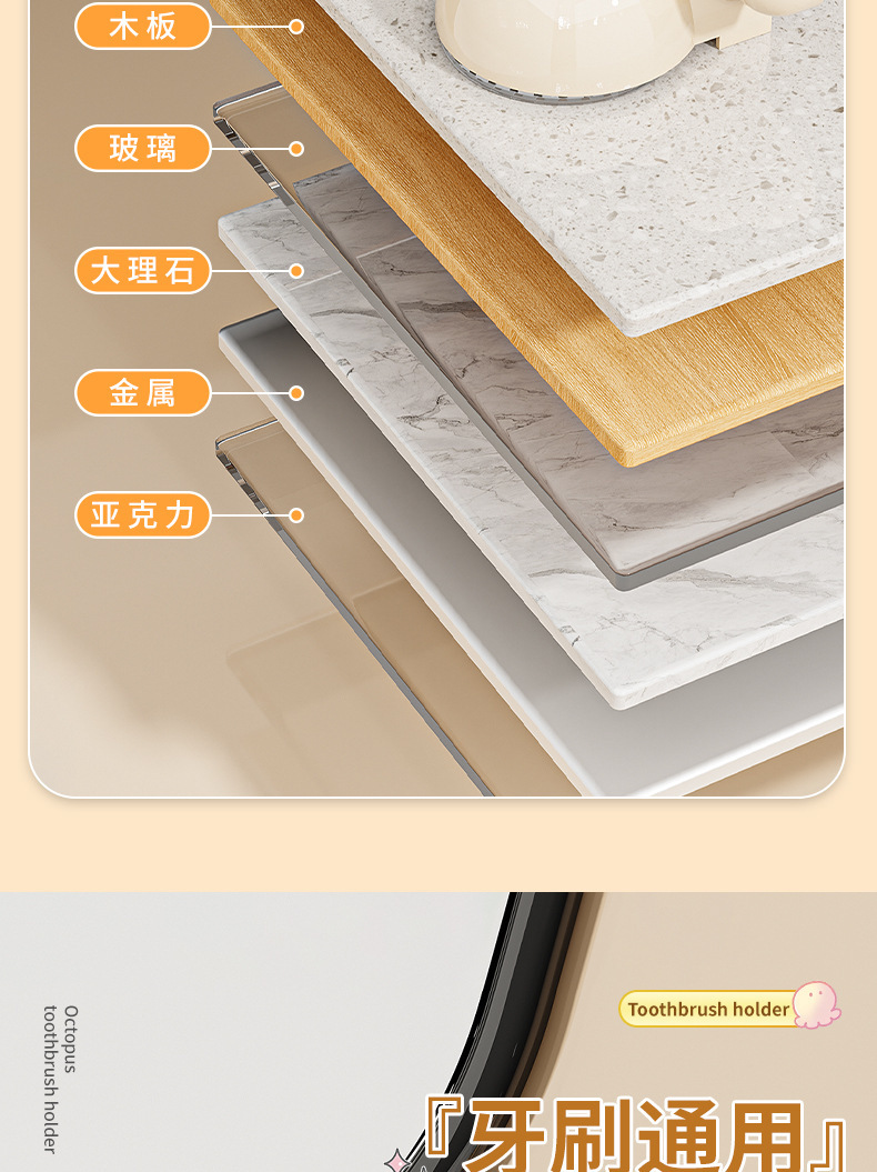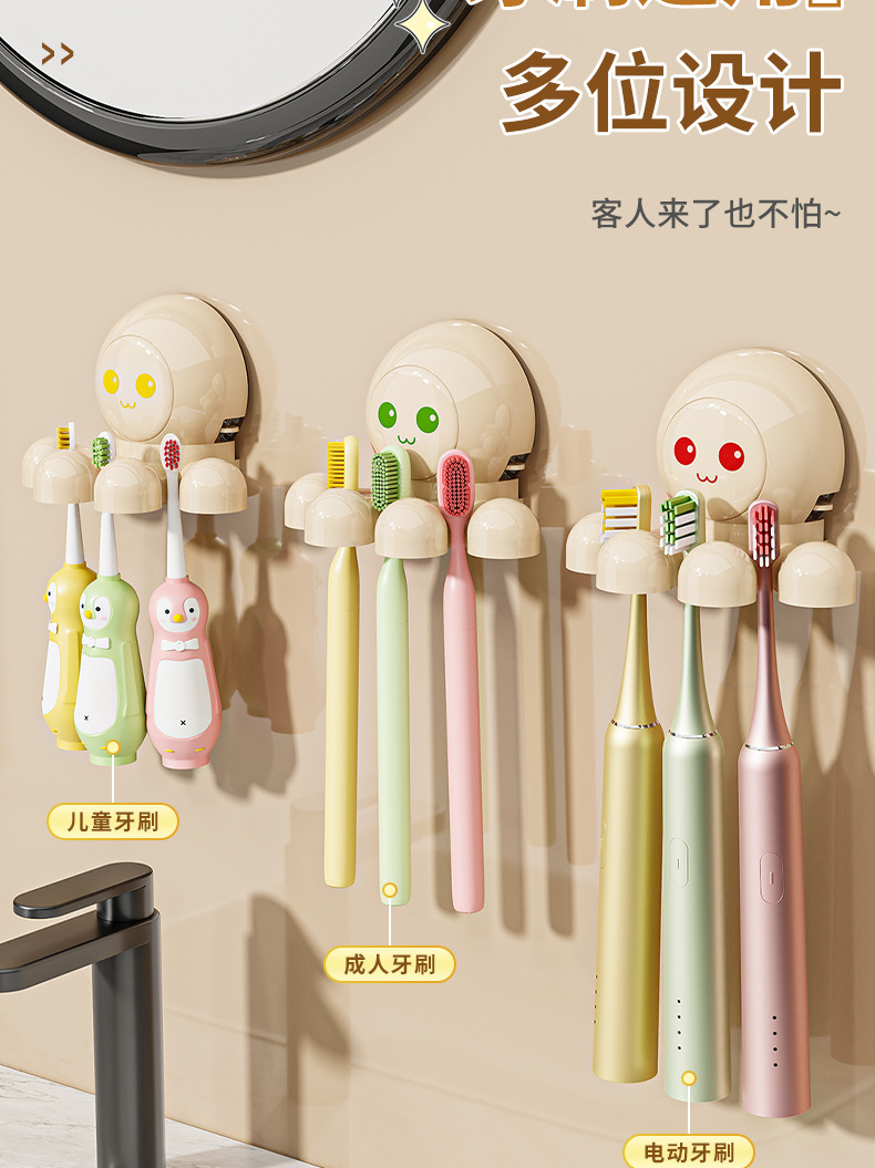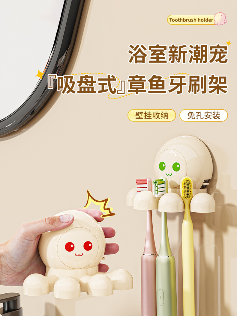 문어 흡입 컵 칫솔 랙 크림 바람 전기 칫솔 스토리지 랙 벽걸이 형 화장실 펀치 프리 스토리지 랙