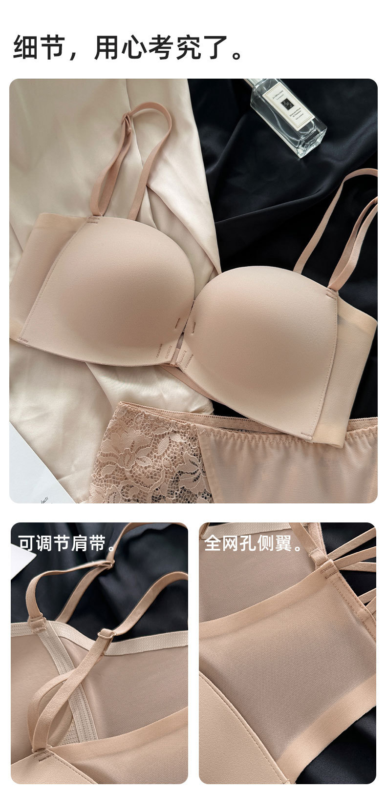 8082 여성용 광택 튜브 탑 끈이 없는 속옷, 미끄럼 방지 작은 가슴 푸시 업, 심리스 프론트 버클, 아름다운 등, 리퀴드 파운데이션 브라스토어 가기
