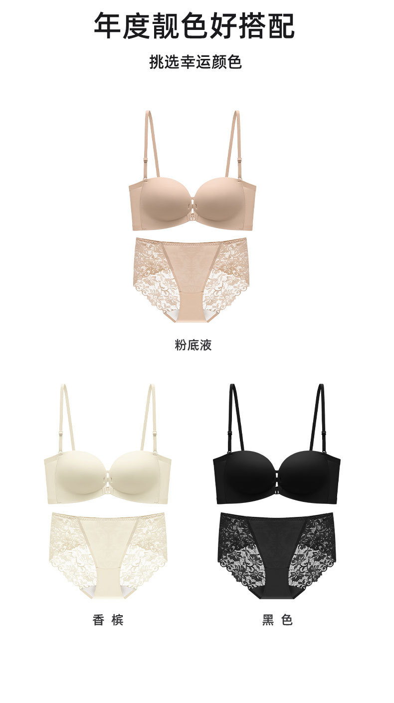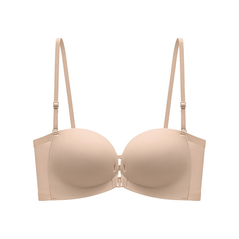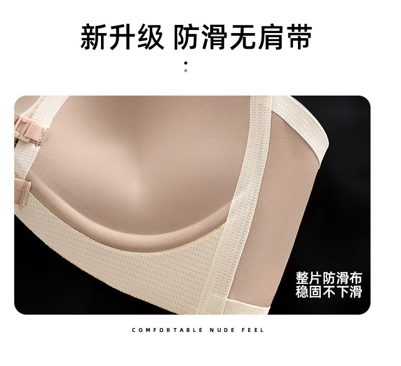 8082 여성용 광택 튜브 탑 끈이 없는 속옷, 미끄럼 방지 작은 가슴 푸시 업, 심리스 프론트 버클, 아름다운 등, 리퀴드 파운데이션 브라
