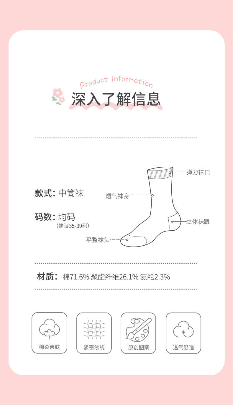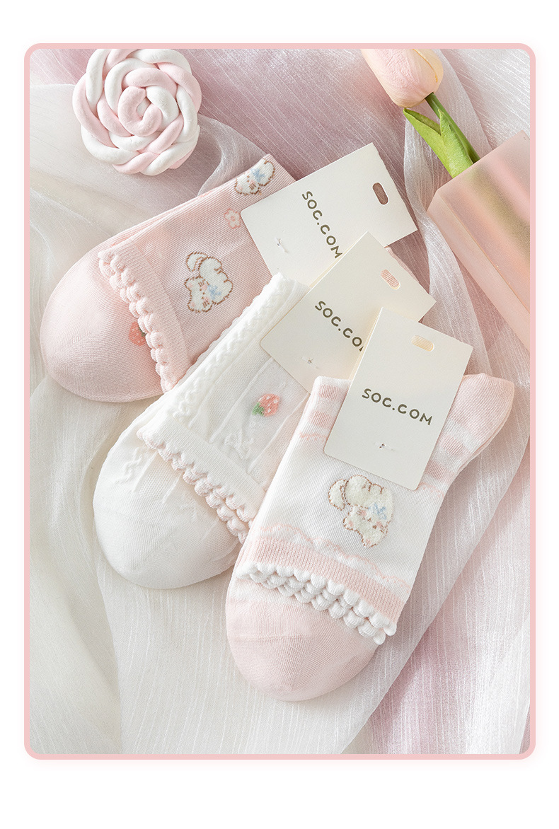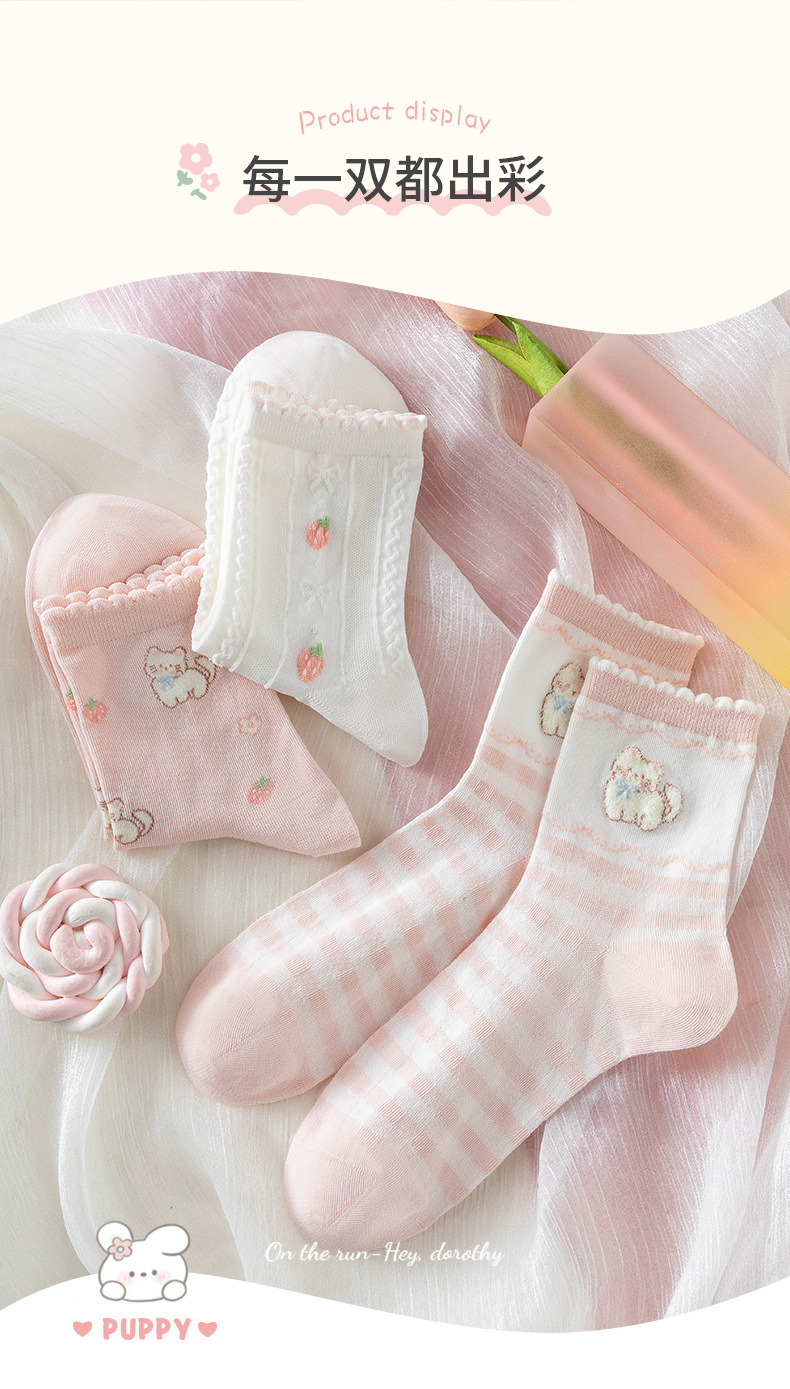 봄 여름 양말 여자 3 쌍 핑크 만화 새끼 고양이 여자의 얇은 중간 크기 양말 한국 아카데미 스타일 여성 양말 면 양말
