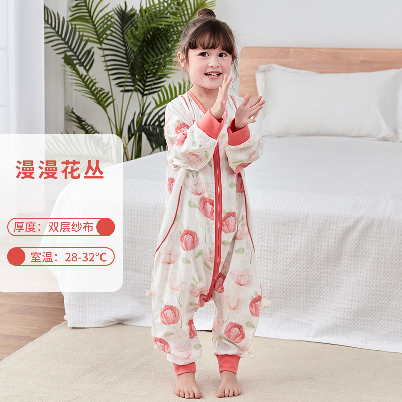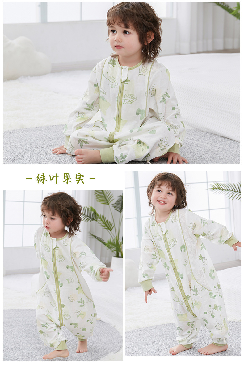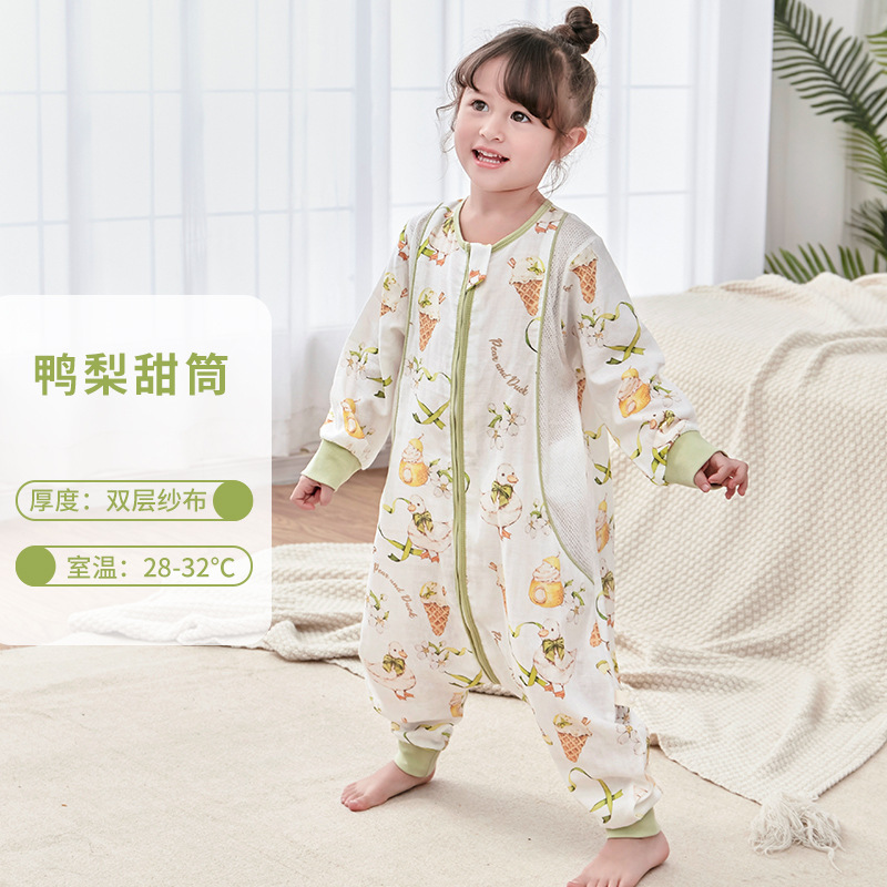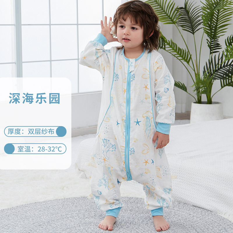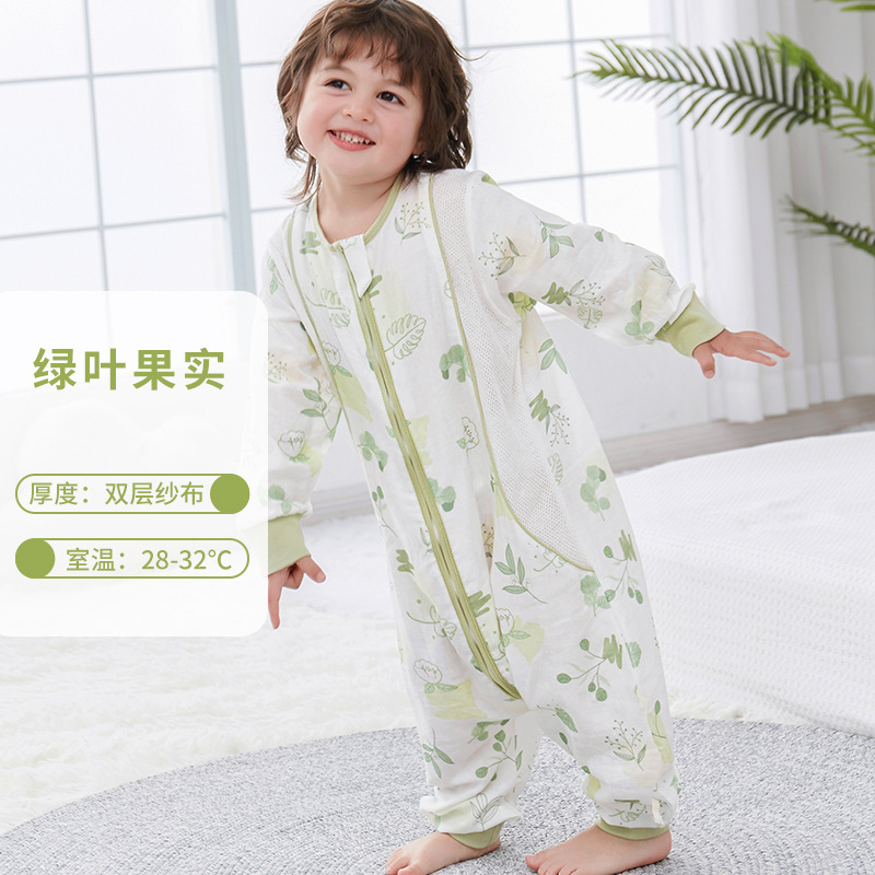 대나무 면화 아기 다리 침낭 봄과 여름 더블 거즈 어린이 침낭 항균 대나무 섬유 아기 잠옷 얇은
