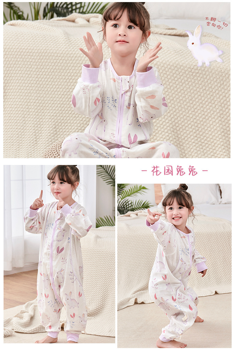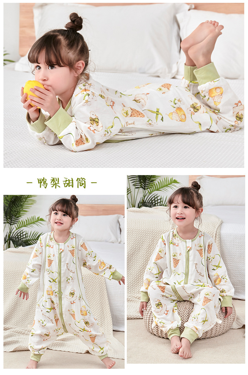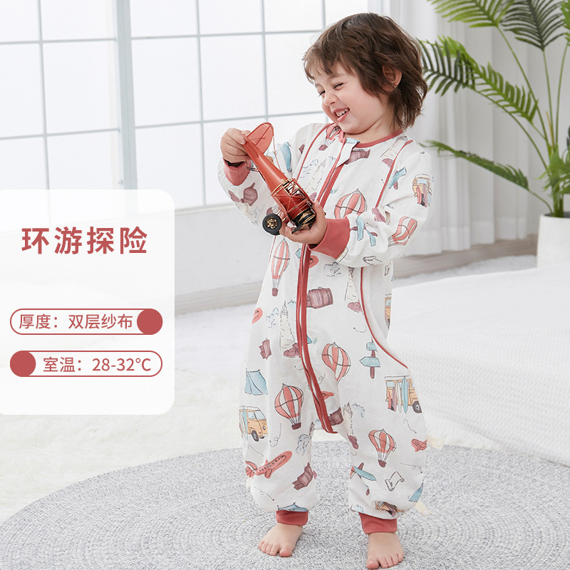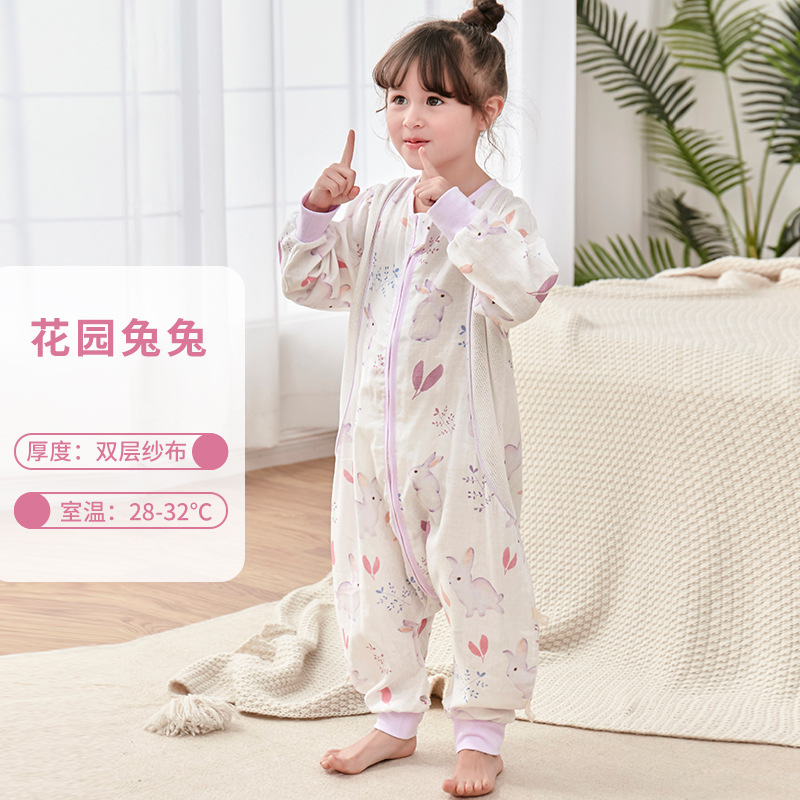 대나무 면화 아기 다리 침낭 봄과 여름 더블 거즈 어린이 침낭 항균 대나무 섬유 아기 잠옷 얇은