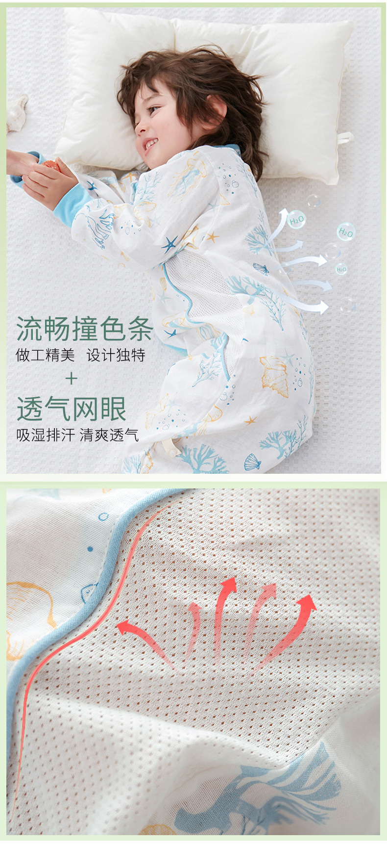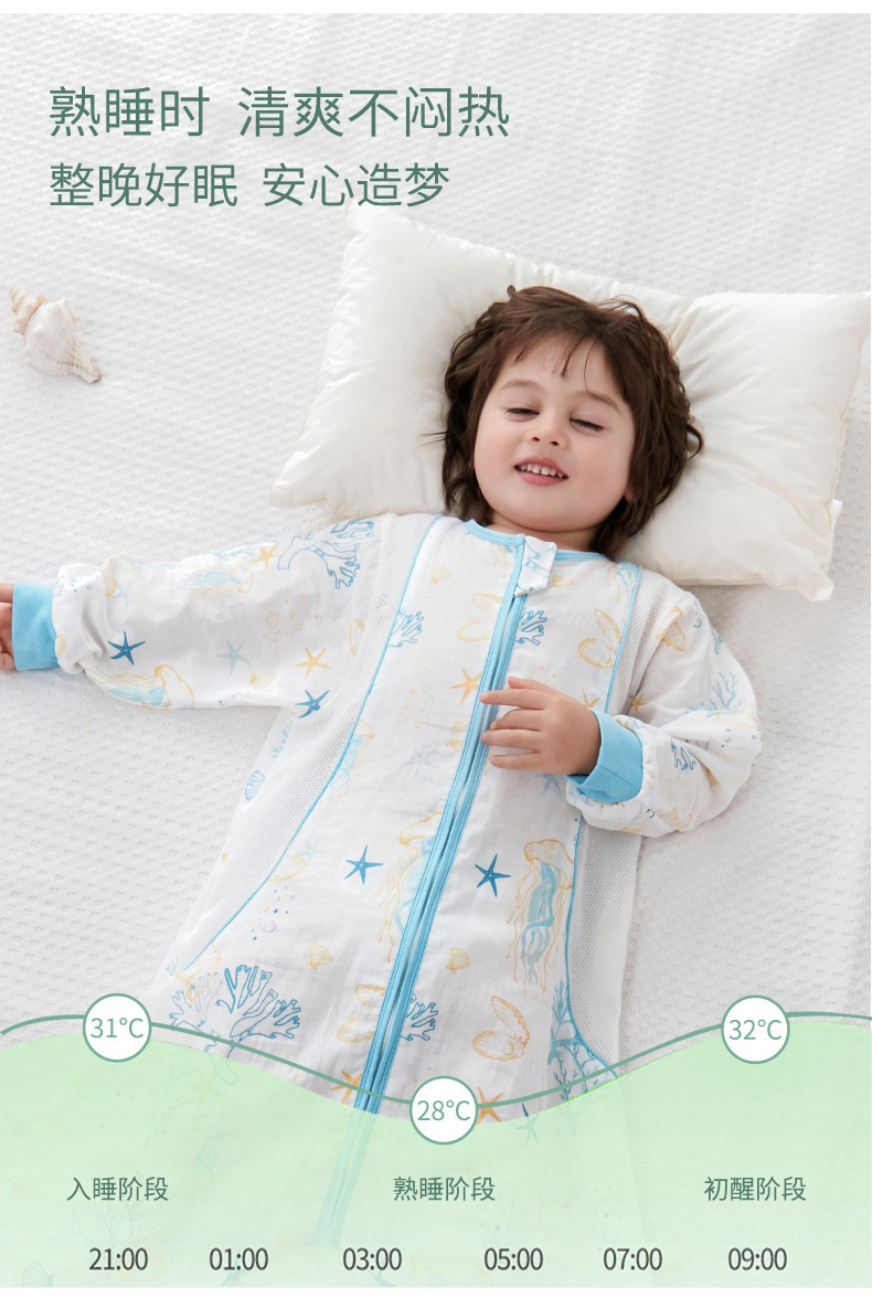 대나무 면화 아기 다리 침낭 봄과 여름 더블 거즈 어린이 침낭 항균 대나무 섬유 아기 잠옷 얇은스토어 가기