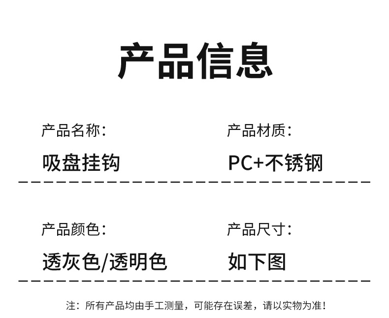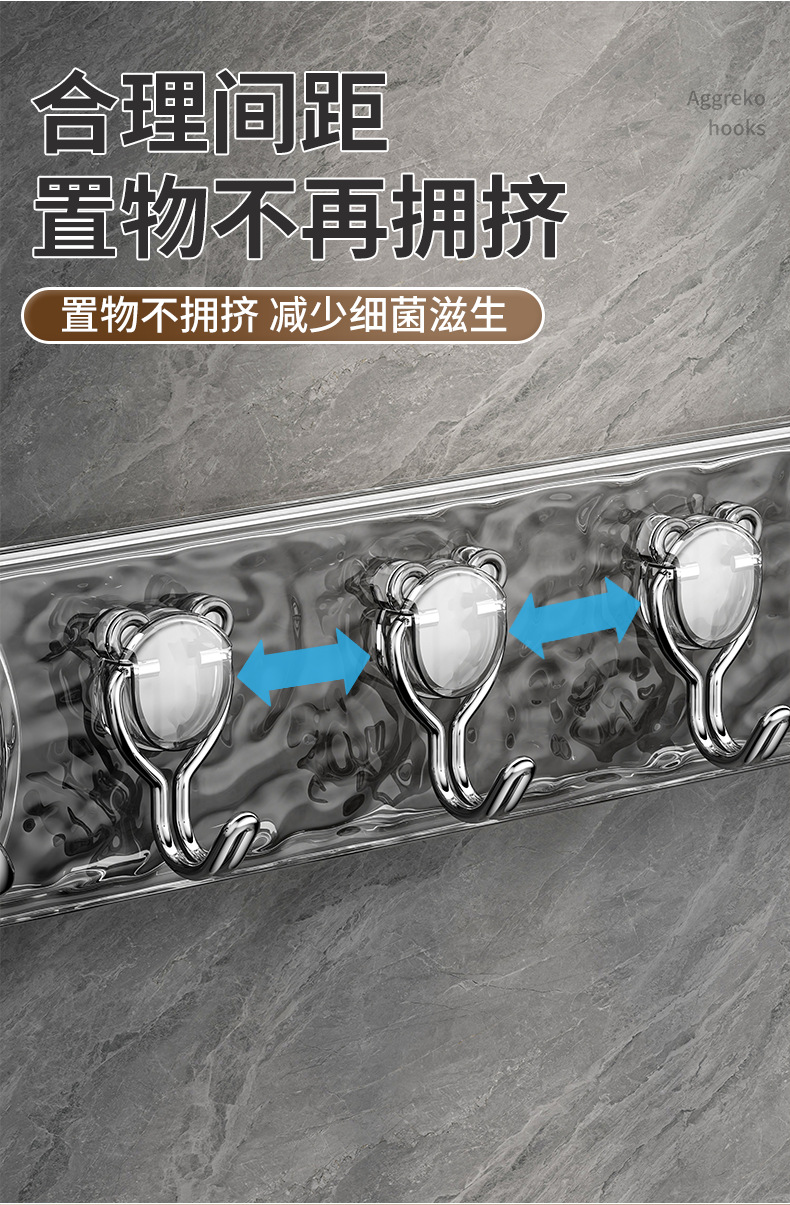 • 펀칭 없음 후크 6개 : 투명 회색 [1팩]